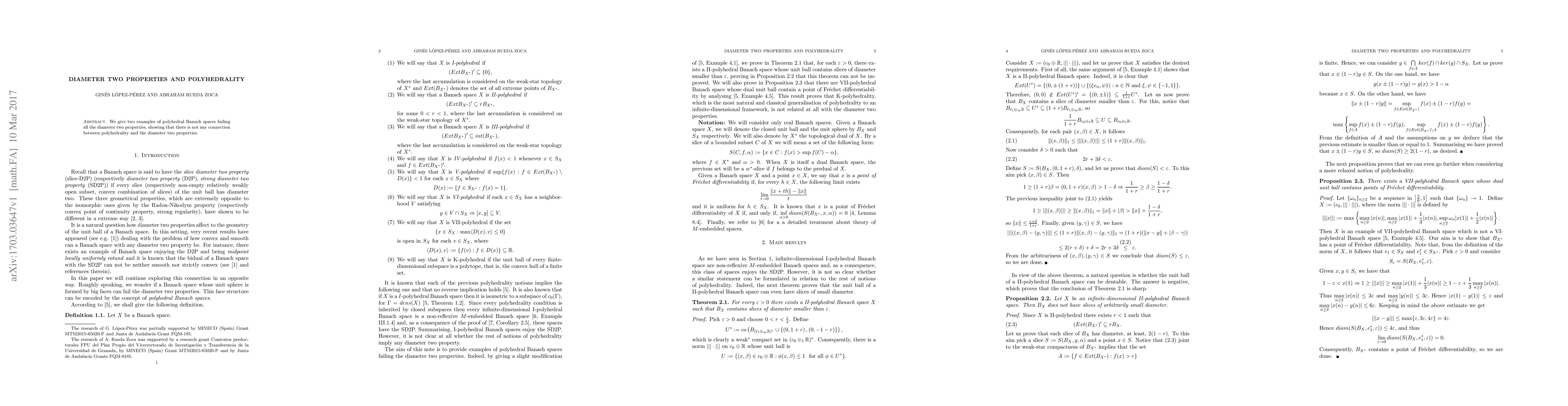 The paper defines various polyhedrality notions for Banach spaces and modifies an existing example to prove the existence of II-polyhedral Banach spaces with slices of small diameter.