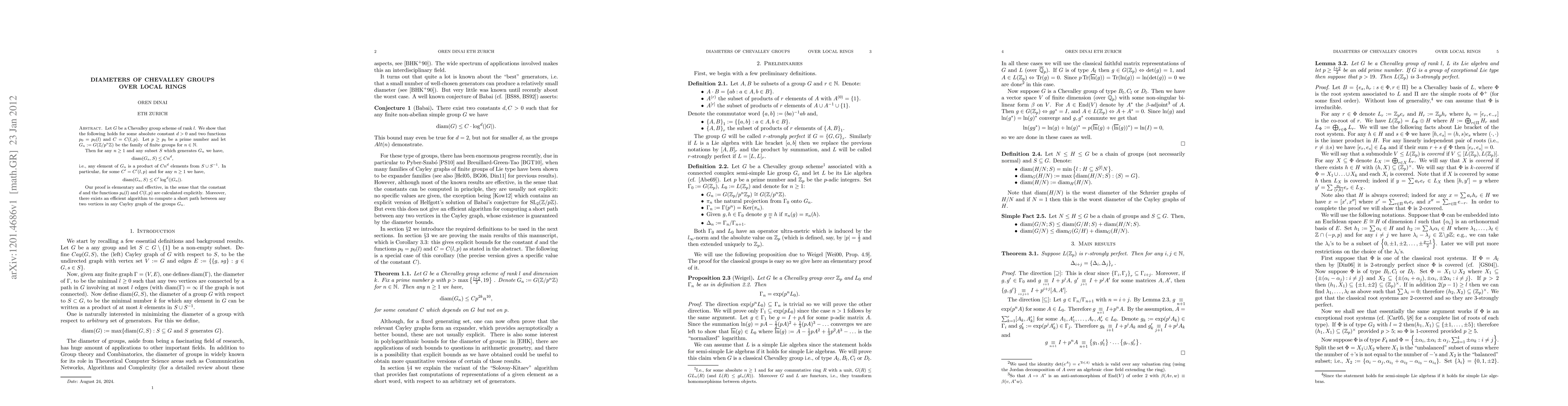 The paper presents an explicit and effective proof of diameter bounds for Cayley graphs of Chevalley groups over local rings, along with an efficient algorithm for computing short paths in these graphs.