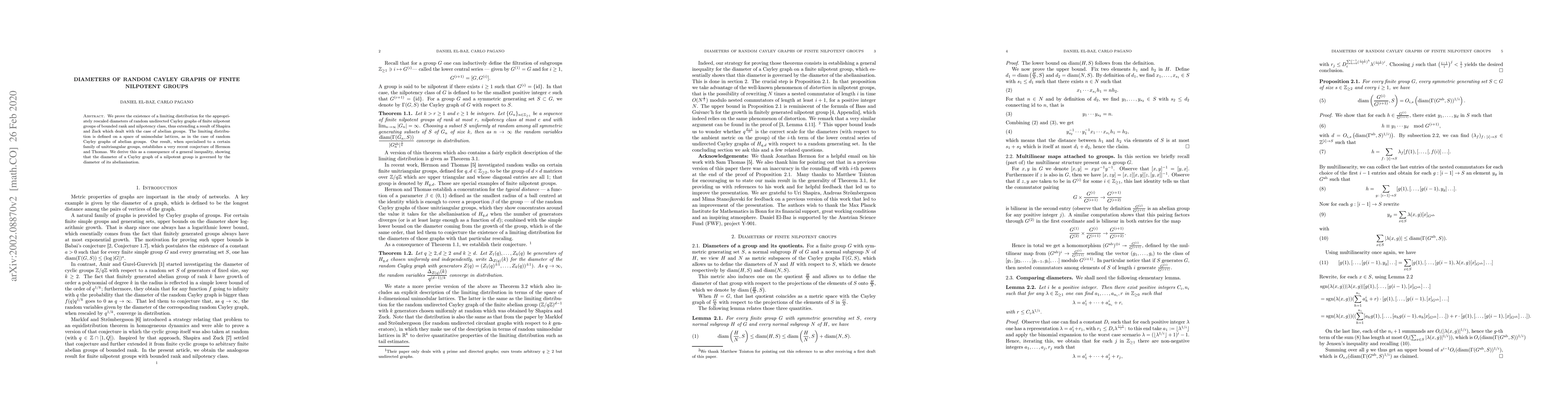 The paper proves the existence of a limiting distribution for the rescaled diameters of random Cayley graphs of finite nilpotent groups, extending previous results for abelian groups. This is achieved by establishing a general inequality governing the diameter of a Cayley graph of a nilpotent group based on its abelianization's diameter, and applying it to unitriangular groups.
