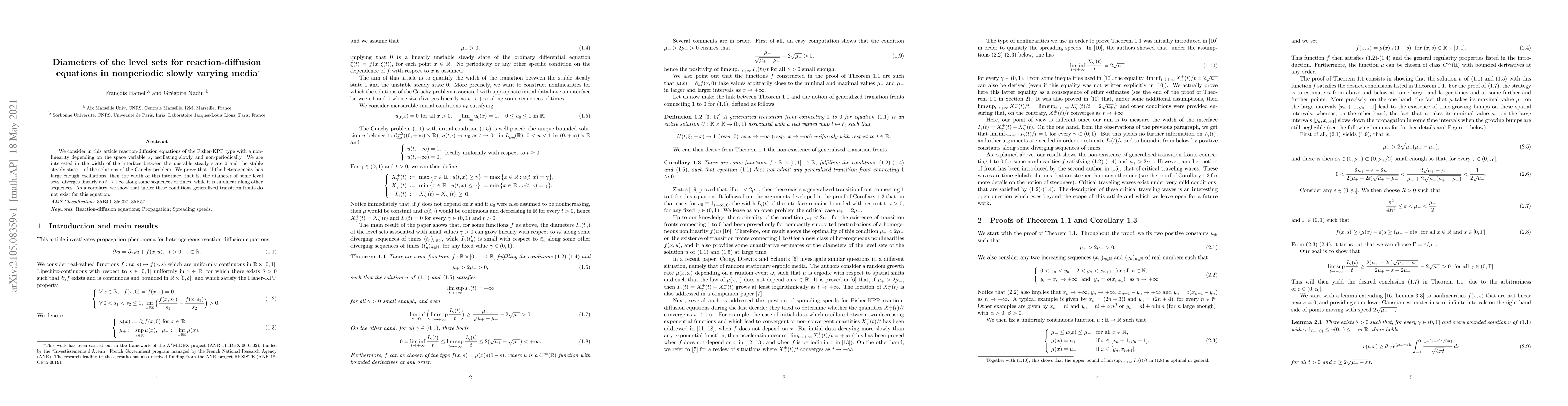 We consider in this article reaction-diffusion equations of the Fisher-KPP type with a nonlinearity depending on the space variable x, oscillating slowly and non-periodically. We are interested in the width of the interface between the unstable steady state 0 and the stable steady state 1 of the solutions of the Cauchy problem. We prove that, if the heterogeneity has large enough oscillations, then the width of this interface, that is, the diameter of some level sets, diverges linearly as t $\rightarrow$ +$\infty$ along some sequences of times, while it is sublinear along other sequences. As a corollary, we show that under these conditions generalized transition fronts do not exist for this equation.