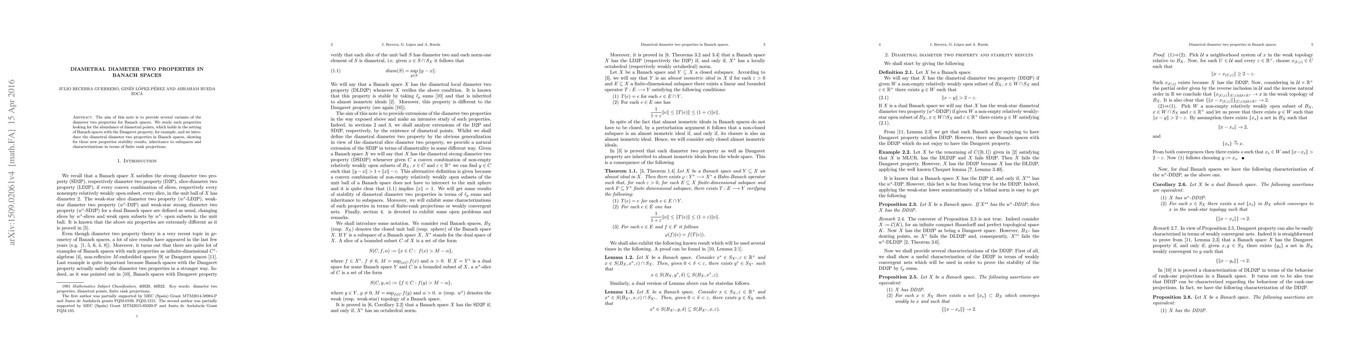 This paper explores various versions of the diameter two properties in Banach spaces, focusing on the presence of diametral points. It introduces new diametral diameter two properties, demonstrating their stability, inheritance to subspaces, and linking them to finite rank projections, particularly in spaces with the Daugavet property.