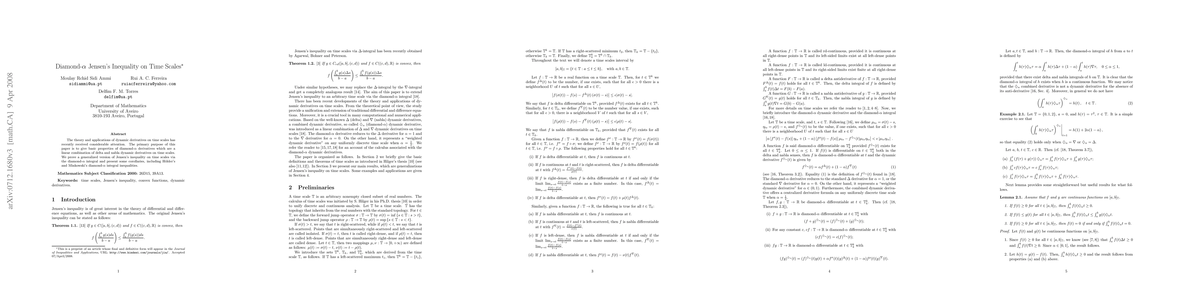 This paper explores the properties of diamond-$\alpha$ derivatives on time scales, proving a generalized Jensen's inequality using the diamond-$\alpha$ integral, and deriving H\"{o}lder's and Minkowski's inequalities in this context.
