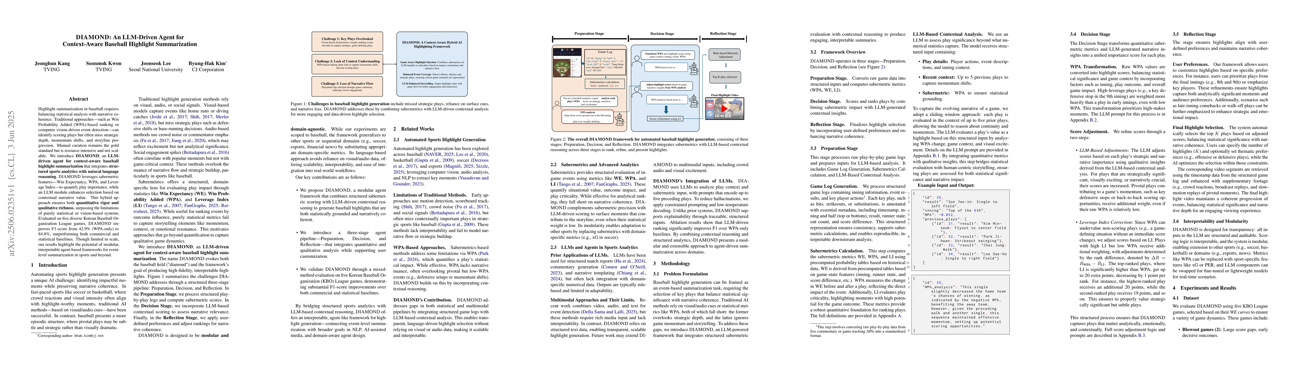 Unlike traditional methods relying solely on statistics or computer vision, DIAMOND offers a novel combination of structured analytics and natural language processing for richer, more contextually relevant sports summaries.