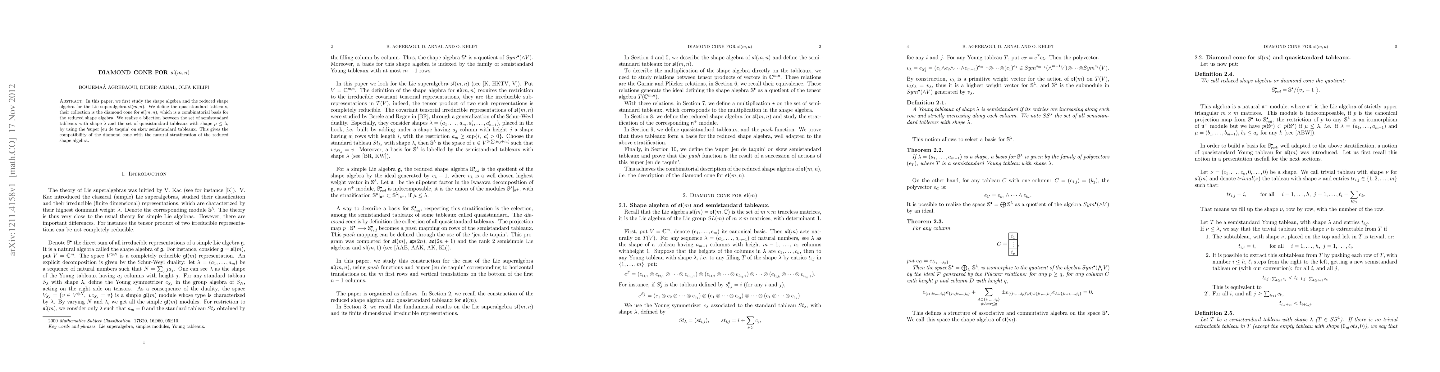 This paper explores the shape algebra and reduced shape algebra for the Lie superalgebra $\mathfrak{sl}(m,n)$, defining a combinatorial basis known as the diamond cone via quasistandard tableaux. It establishes a bijection between semistandard and quasistandard tableaux using 'super jeu de taquin', ensuring compatibility with the reduced shape algebra's natural stratification.