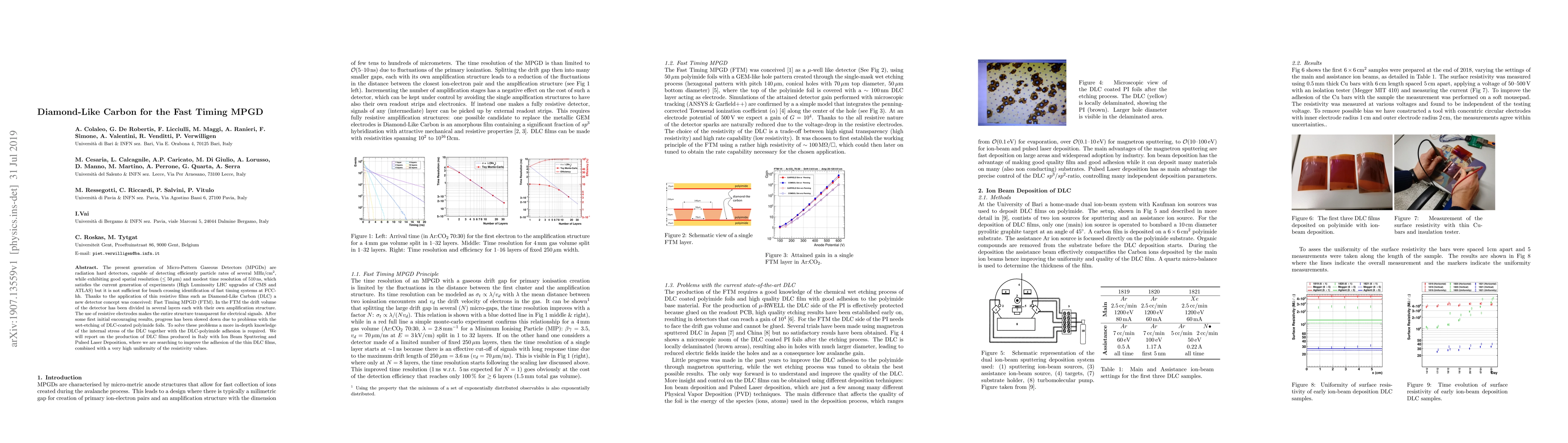 The present generation of Micro-Pattern Gaseous Detectors (MPGDs) are radiation hard detectors, capable of detecting efficiently particle rates of several MHz/cm$^2$ , while exhibiting good spatial resolution ($\leq$ 50 $\mu$m) and modest time resolution of 5-10 ns, which satisfies the current generation of experiments (High Luminosity LHC upgrades of CMS and ATLAS) but it is not sufficient for bunch crossing identification of fast timing systems at FCC- hh. Thanks to the application of thin resistive films such as Diamond-Like Carbon (DLC) a new detector concept was conceived: Fast Timing MPGD (FTM). In the FTM the drift volume of the detector has been divided in several layers each with their own amplification structure. The use of resistive electrodes makes the entire structure transparent for electrical signals. After some first initial encouraging results, progress has been slowed down due to problems with the wet-etching of DLC-coated polyimide foils. To solve these problems a more in-depth knowledge of the internal stress of the DLC together with the DLC-polyimide adhesion is required. We will report on the production of DLC films produced in Italy with Ion Beam Sputtering and Pulsed Laser Deposition, where we are searching to improve the adhesion of the thin DLC films, combined with a very high uniformity of the resistivity values.