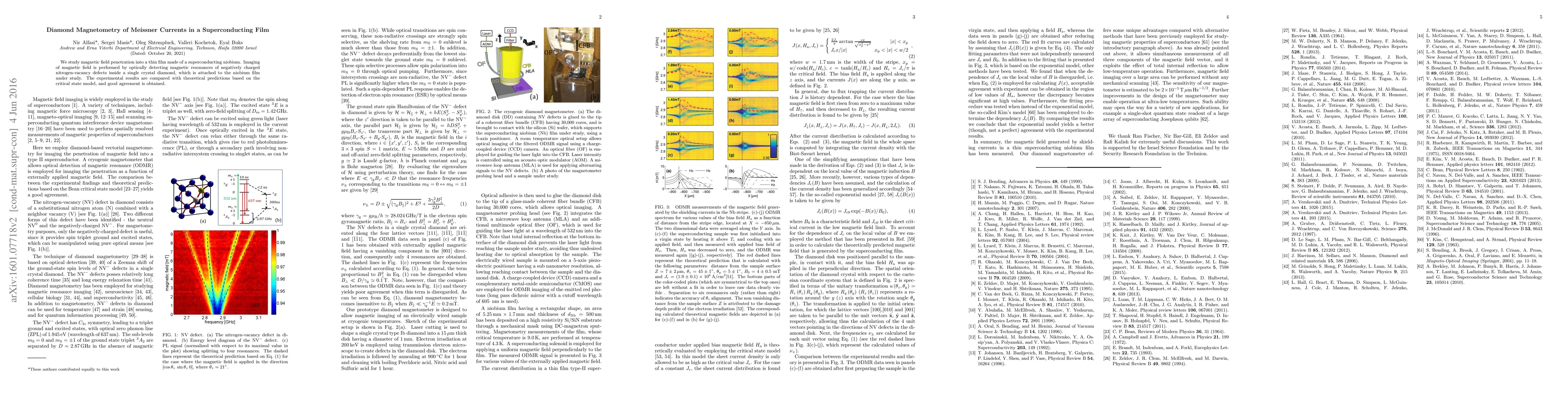 We study magnetic field penetration into a thin film made of a superconducting niobium. Imaging of magnetic field is performed by optically detecting magnetic resonances of negatively charged nitrogen-vacancy defects inside a single crystal diamond, which is attached to the niobium film under study. The experimental results are compared with theoretical predictions based on the critical state model, and good agreement is obtained.