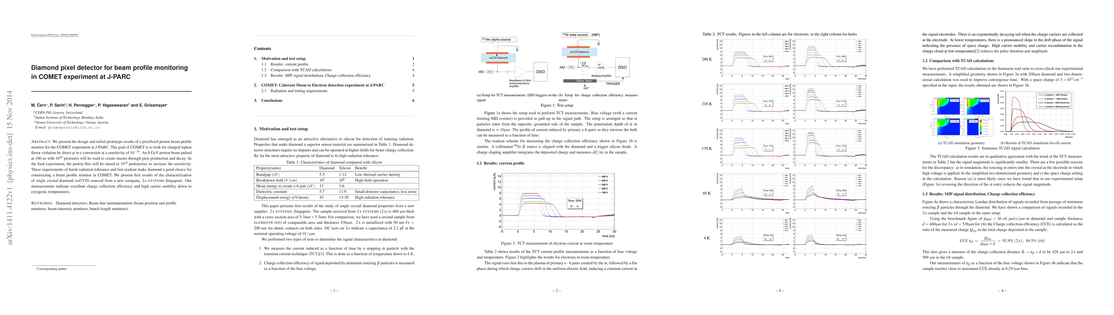 Researchers have developed a diamond pixel detector to monitor proton beam profiles in the COMET experiment at J-PARC, which aims to detect charged lepton flavor violation with high sensitivity.