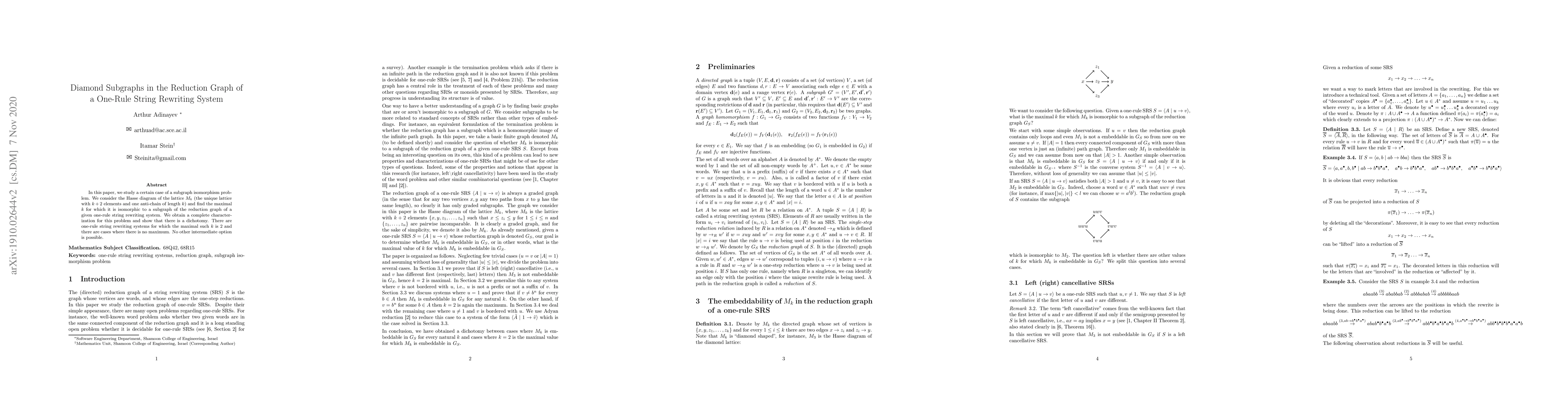 In this paper, we study a certain case of a subgraph isomorphism problem. We consider the Hasse diagram of the lattice $M_{k}$ (the unique lattice with $k+2$ elements and one anti-chain of length $k$) and want to find the maximal $k$ for which it is isomorphic to a subgraph of the reduction graph of a given one-rule string rewriting system. We obtain a complete characterization for this problem and show that there is a dichotomy. There are one-rule string rewriting systems for which the maximal such $k$ is $2$ and there are cases where there is no maximum. No other intermediate option is possible.