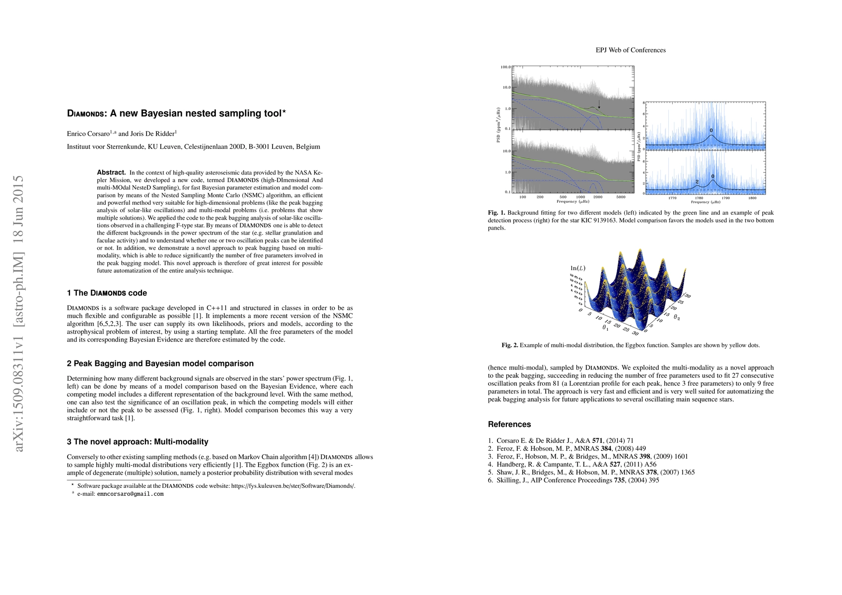 In the context of high-quality asteroseismic data provided by the NASA Kepler mission, we developed a new code, termed Diamonds (high-DImensional And multi-MOdal NesteD Sampling), for fast Bayesian parameter estimation and model comparison by means of the Nested Sampling Monte Carlo (NSMC) algorithm, an efficient and powerful method very suitable for high-dimensional problems (like the peak bagging analysis of solar-like oscillations) and multi-modal problems (i.e. problems that show multiple solutions). We applied the code to the peak bagging analysis of solar-like oscillations observed in a challenging F-type star. By means of Diamonds one is able to detect the different backgrounds in the power spectrum of the star (e.g. stellar granulation and faculae activity) and to understand whether one or two oscillation peaks can be identified or not. In addition, we demonstrate a novel approach to peak bagging based on multimodality, which is able to reduce significantly the number of free parameters involved in the peak bagging model. This novel approach is therefore of great interest for possible future automatization of the entire analysis technique.