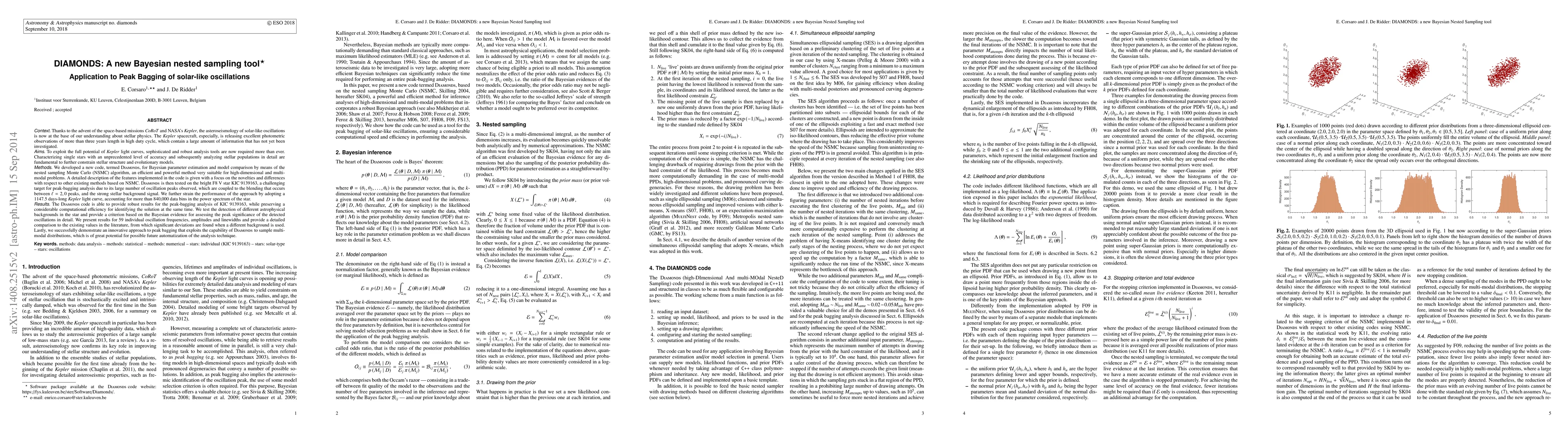 The paper introduces Diamonds, a new Bayesian nested sampling tool for parameter estimation and model comparison, particularly for analyzing solar-like oscillations in stars. The Diamonds code successfully performs peak-bagging analysis on the star KIC~9139163, demonstrating its robustness and potential for future automation in the analysis of stellar oscillations.