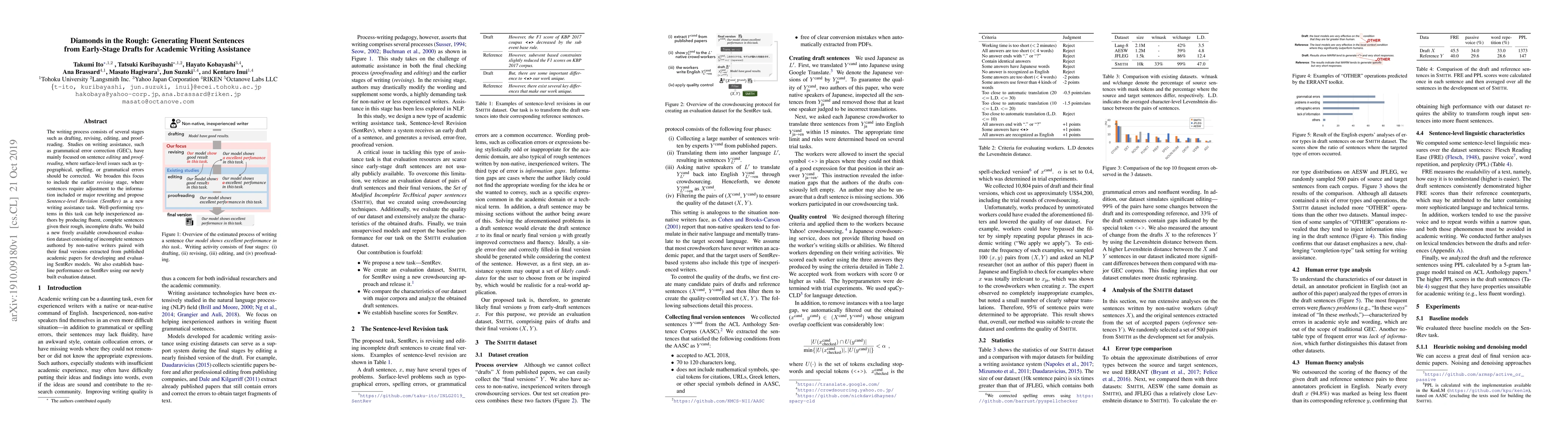 This paper introduces Sentence-level Revision (SentRev) as a new writing assistance task aimed at improving the fluency of early-stage drafts by transforming rough, incomplete sentences into complete, coherent ones. The authors create a new evaluation dataset to develop and assess SentRev models, establishing a baseline for future improvements.