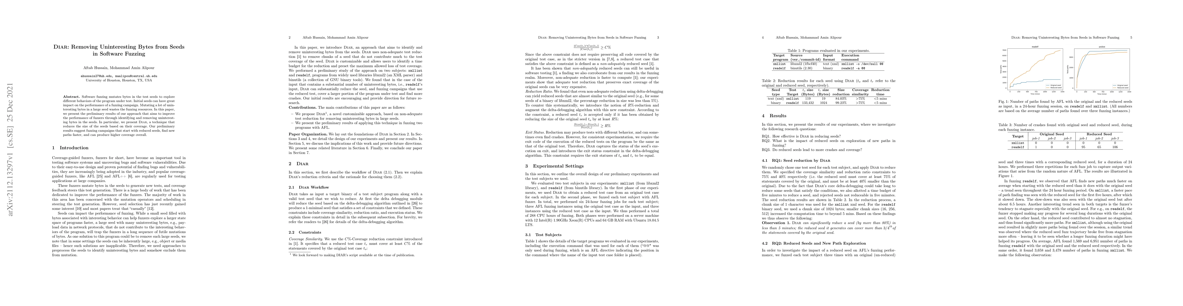 This paper introduces DIAR, a technique to improve software fuzzing by identifying and removing uninteresting bytes in initial seeds, thereby reducing seed size and enhancing coverage. Preliminary results indicate that fuzzing campaigns with optimized seeds can discover new paths faster and achieve higher overall coverage.