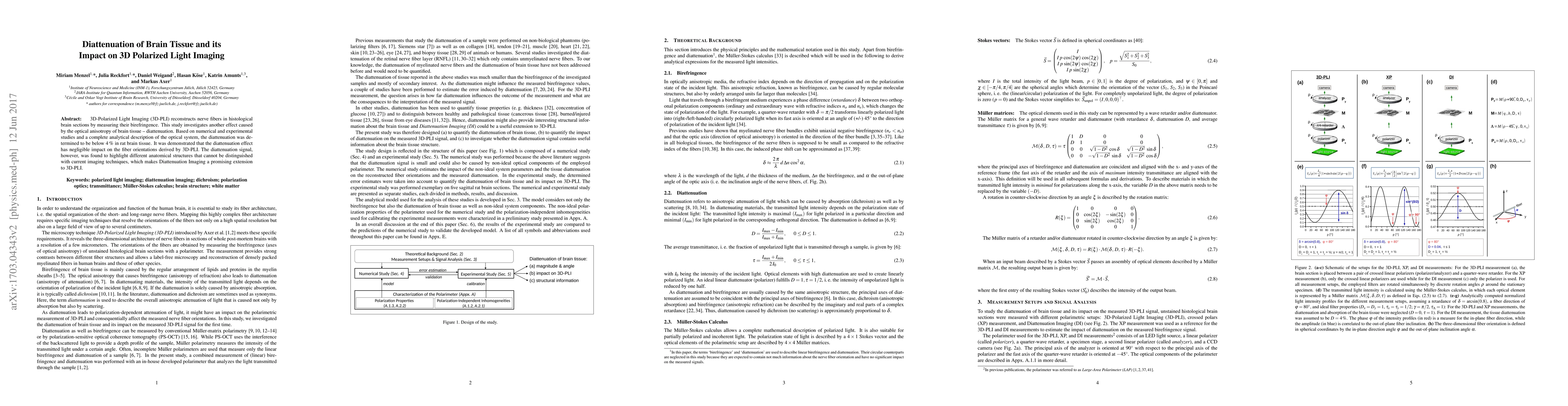 3D-Polarized Light Imaging (3D-PLI) reconstructs nerve fibers in histological brain sections by measuring their birefringence. This study investigates another effect caused by the optical anisotropy of brain tissue - diattenuation. Based on numerical and experimental studies and a complete analytical description of the optical system, the diattenuation was determined to be below 4 % in rat brain tissue. It was demonstrated that the diattenuation effect has negligible impact on the fiber orientations derived by 3D-PLI. The diattenuation signal, however, was found to highlight different anatomical structures that cannot be distinguished with current imaging techniques, which makes Diattenuation Imaging a promising extension to 3D-PLI.