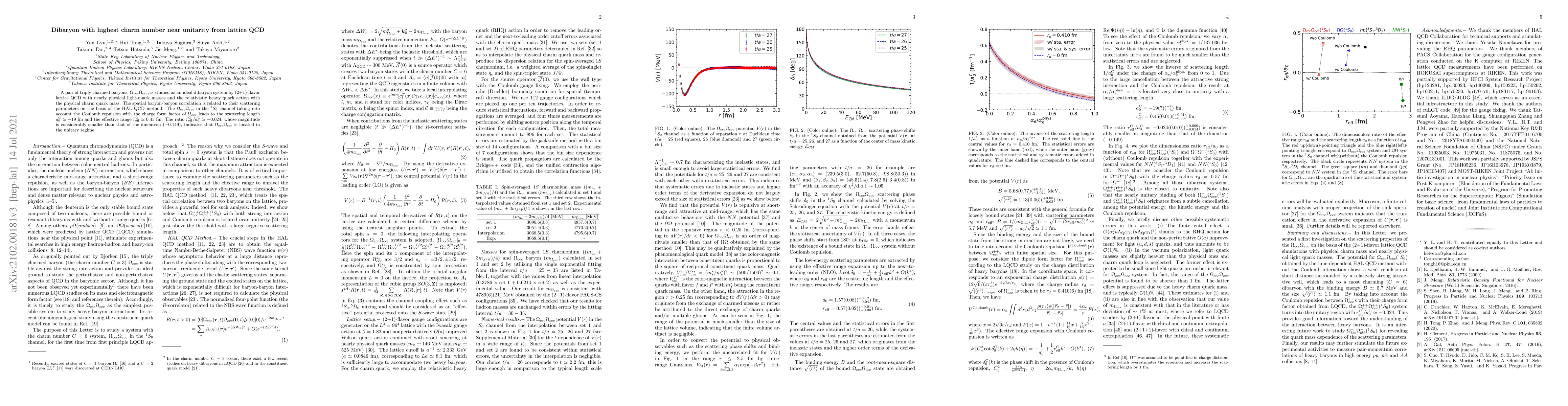 A pair of triply charmed baryons, $\Omega_{ccc}\Omega_{ccc}$, is studied as an ideal dibaryon system by (2+1)-flavor lattice QCD with nearly physical light-quark masses and the relativistic heavy quark action with the physical charm quark mass. The spatial baryon-baryon correlation is related to their scattering parameters on the basis of the HAL QCD method. The $\Omega_{ccc}\Omega_{ccc}$ in the ${^1S_0}$ channel taking into account the Coulomb repulsion with the charge form factor of $\Omega_{ccc}$ leads to the scattering length $a^{\rm C}_0\simeq -19~\text{fm}$ and the effective range $r^{\rm C}_{\mathrm{eff}}\simeq 0.45~\text{fm}$. The ratio $r^{\rm C}_{\mathrm{eff}}/a^{\rm C}_0 \simeq -0.024$, whose magnitude is considerably smaller than that of the dineutron ($-0.149$), indicates that $\Omega_{ccc}\Omega_{ccc}$ is located in the unitary regime.