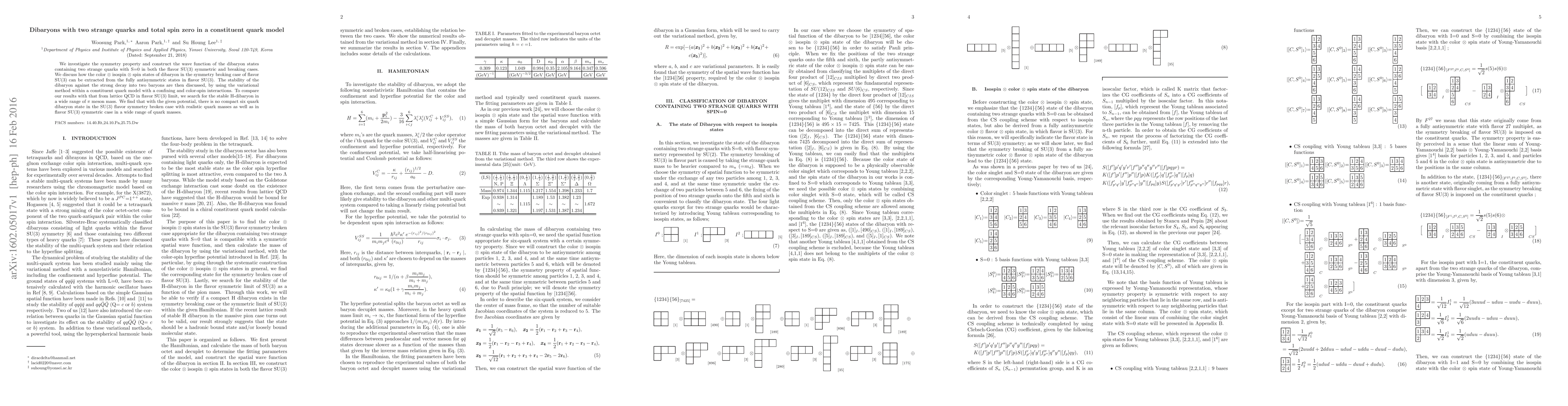 This paper explores dibaryon states with two strange quarks and total spin zero, analyzing their wave functions and stability within a constituent quark model. It finds no stable six-quark dibaryon state under various quark mass scenarios, contrasting with lattice QCD predictions.
