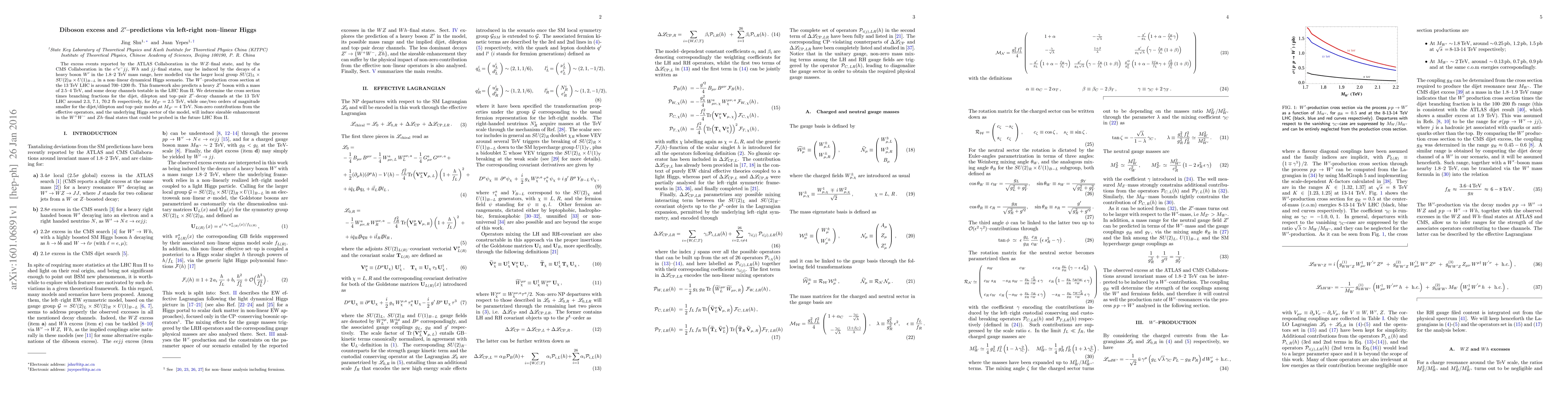 The research proposes a W' model inspired by the larger local group SU(2)_L×SU(2)_R×U(1)_{B-L} in a non-linear EW dynamical Higgs scenario to explain the excess events in WZ and Wh final states reported by ATLAS and CMS collaborations.