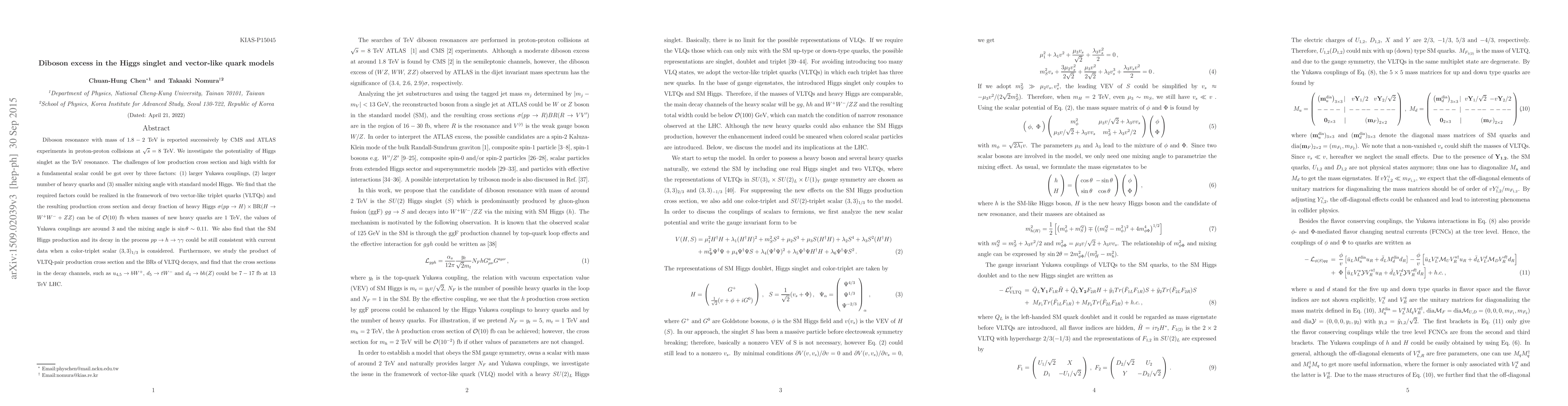 This paper investigates the potential of a Higgs singlet to explain a diboson resonance observed in proton-proton collisions at 8 TeV. It proposes that the required production cross section and decay fraction can be achieved through larger Yukawa couplings, heavy vector-like quarks, and a smaller mixing angle with the standard model Higgs, facilitated by two vector-like triplet quarks.