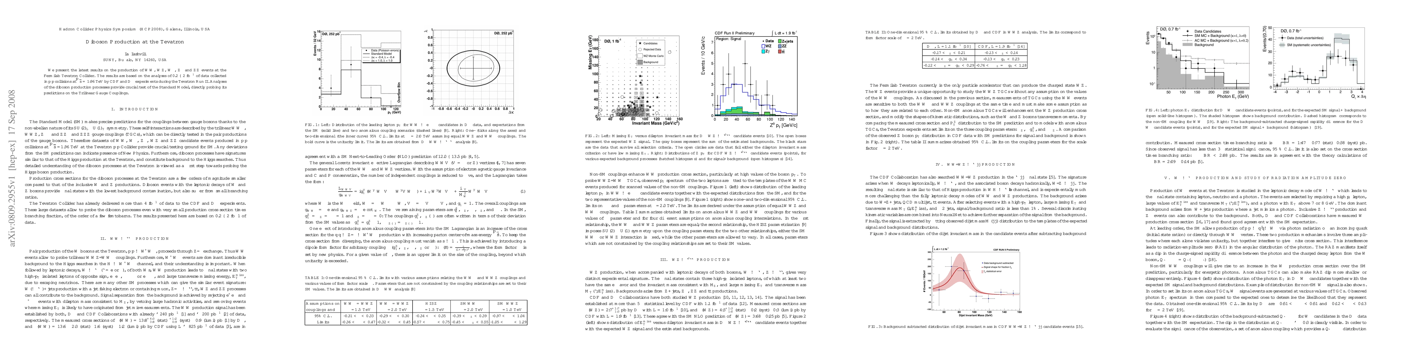 This paper reports on the latest findings from the CDF and DO experiments at the Tevatron Collider regarding the production of various diboson events (WW, WZ, Wγ, Zγ, ZZ) in proton-antiproton collisions at 1.96 TeV. These results, based on data collected from 0.2 to 2 fb⁻¹, serve as a critical test of the Standard Model's predictions on Trilinear Gauge Couplings.