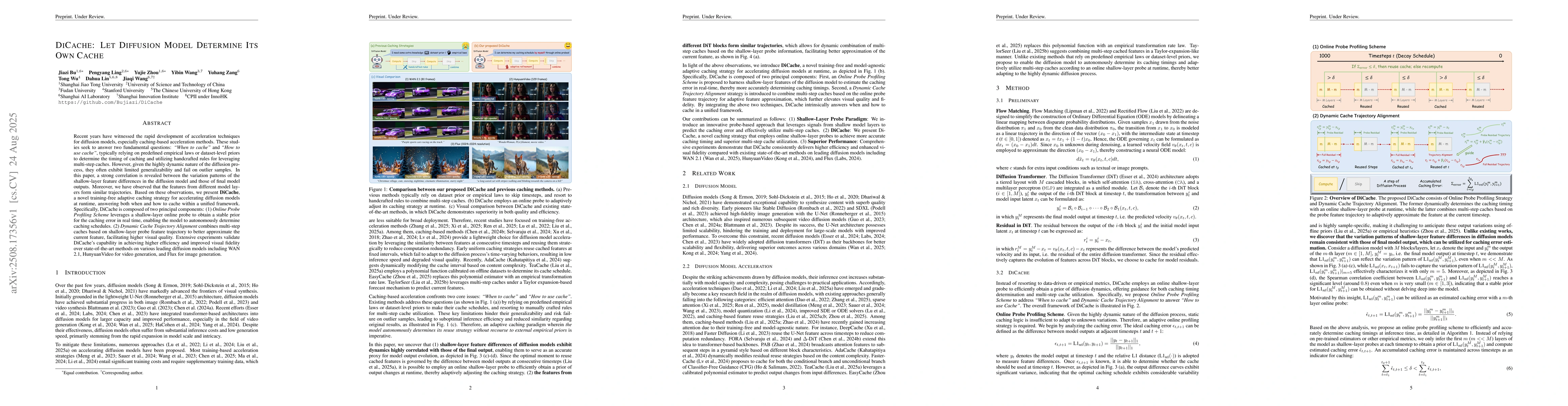 Recent years have witnessed the rapid development of acceleration techniques for diffusion models, especially caching-based acceleration methods. These studies seek to answer two fundamental questions: "When to cache" and "How to use cache", typically relying on predefined empirical laws or dataset-level priors to determine the timing of caching and utilizing handcrafted rules for leveraging multi-step caches. However, given the highly dynamic nature of the diffusion process, they often exhibit limited generalizability and fail on outlier samples. In this paper, a strong correlation is revealed between the variation patterns of the shallow-layer feature differences in the diffusion model and those of final model outputs. Moreover, we have observed that the features from different model layers form similar trajectories. Based on these observations, we present DiCache, a novel training-free adaptive caching strategy for accelerating diffusion models at runtime, answering both when and how to cache within a unified framework. Specifically, DiCache is composed of two principal components: (1) Online Probe Profiling Scheme leverages a shallow-layer online probe to obtain a stable prior for the caching error in real time, enabling the model to autonomously determine caching schedules. (2) Dynamic Cache Trajectory Alignment combines multi-step caches based on shallow-layer probe feature trajectory to better approximate the current feature, facilitating higher visual quality. Extensive experiments validate DiCache's capability in achieving higher efficiency and improved visual fidelity over state-of-the-art methods on various leading diffusion models including WAN 2.1, HunyuanVideo for video generation, and Flux for image generation.