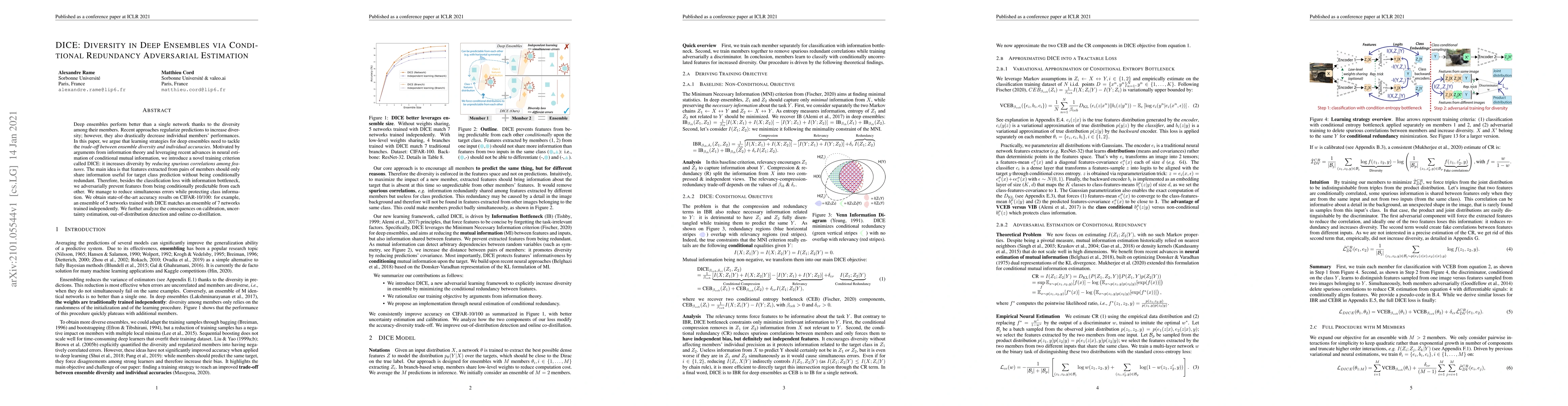 A new training criterion called DICE improves deep ensemble performance by increasing diversity while protecting individual network accuracy. It achieves state-of-the-art results on CIFAR-10/100.