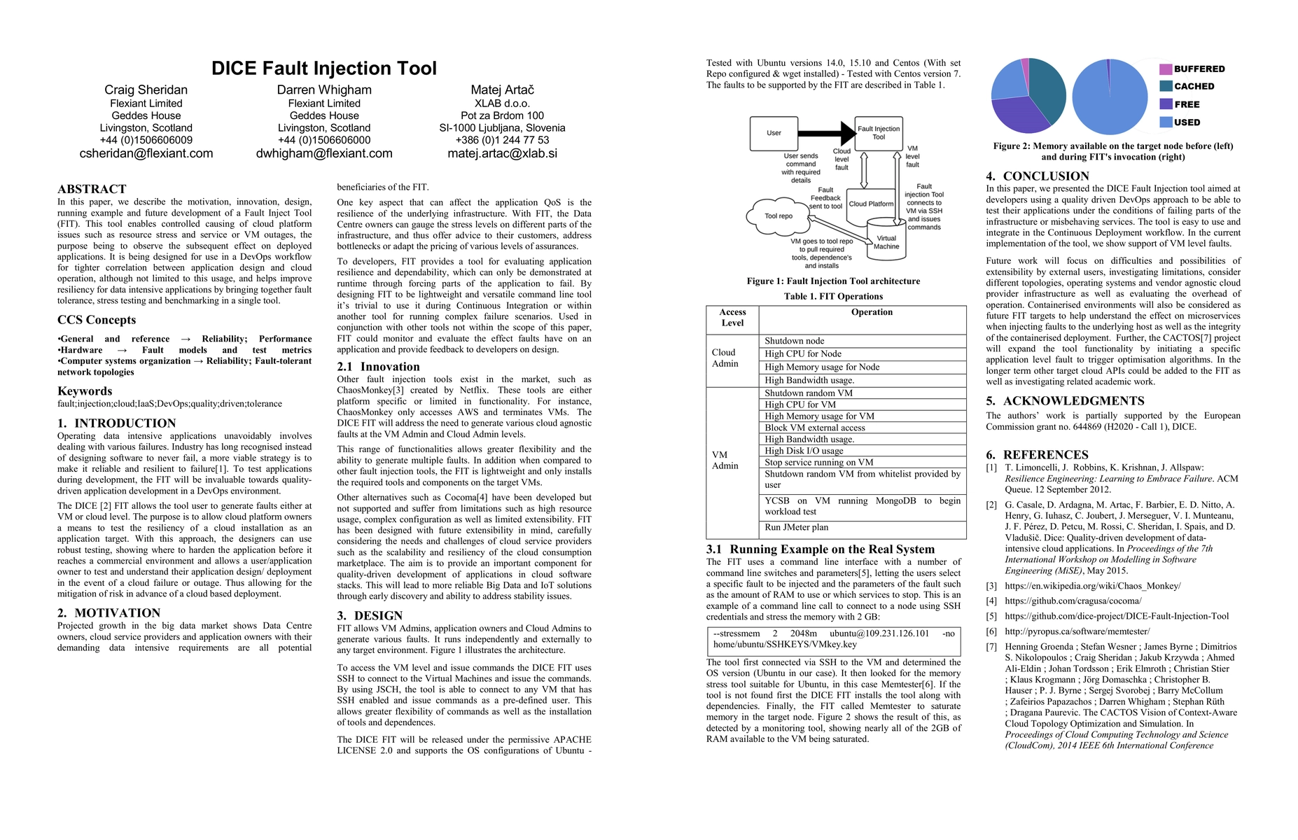 A new tool called DICE Fault Injection Tool is developed to test cloud platform issues in controlled environments, improving resiliency for data-intensive applications. It aims to enhance DevOps workflows with tighter correlation between application design and cloud operation.