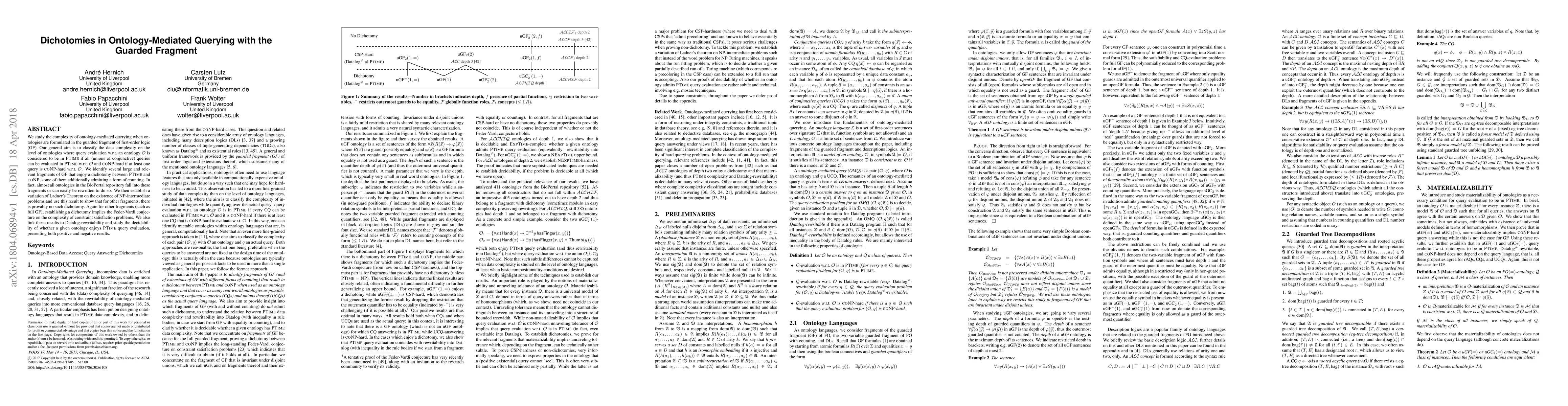 This paper investigates the complexity of ontology-mediated querying within the guarded fragment of first-order logic, identifying fragments that exhibit a dichotomy between PTime and coNP complexity. It also explores the implications of these findings on the Feder-Vardi conjecture and the decidability of PTime query evaluation for given ontologies.