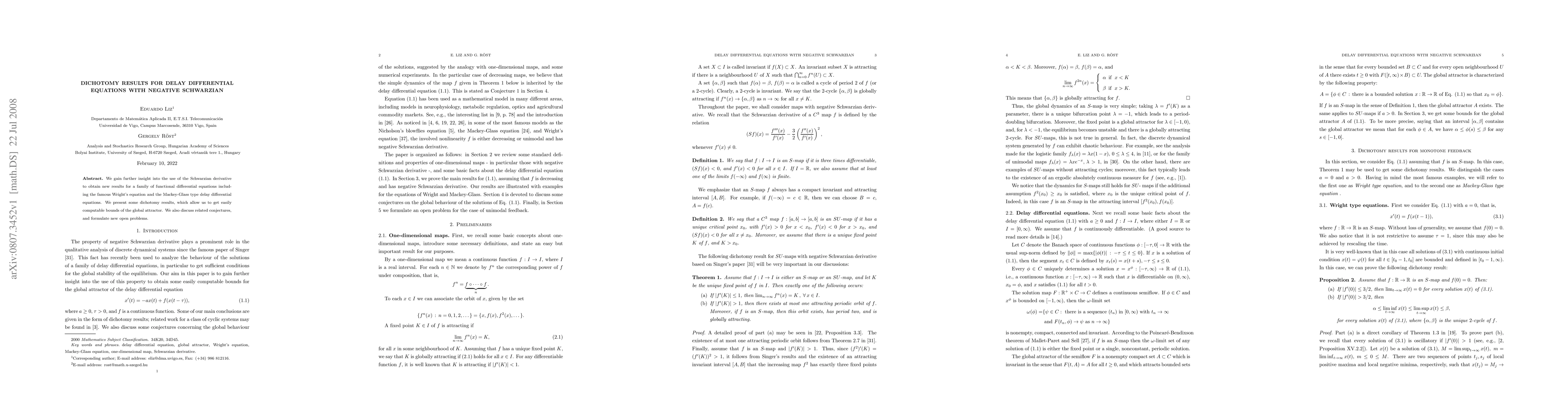 This paper utilizes the Schwarzian derivative to derive new insights and dichotomy results for functional differential equations, including Wright's equation and Mackey-Glass type delay differential equations, providing easily computable bounds for the global attractor and proposing new open problems.