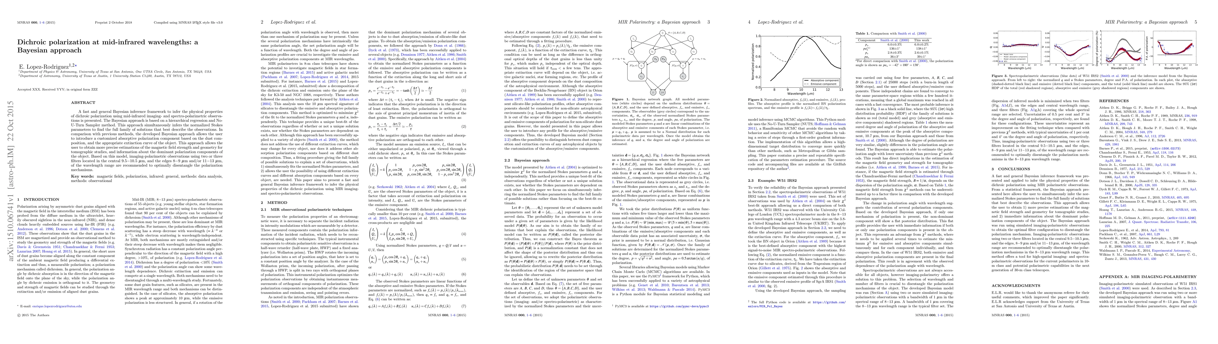 A fast and general Bayesian inference framework to infer the physical properties of dichroic polarization using mid-infrared imaging- and spectro-polarimetric observations is presented. The Bayesian approach is based on a hierarchical regression and No-U-Turn Sampler method. This approach simultaneously infers the normalized Stokes parameters to find the full family of solutions that best describe the observations. In comparison with previous methods, the developed Bayesian approach allows the user to introduce a customized absorptive polarization component based on the dust composition, and the appropriate extinction curve of the object. This approach allows the user to obtain more precise estimations of the magnetic field strength and geometry for tomographic studies, and information about the dominant polarization components of the object. Based on this model, imaging-polarimetric observations using two or three filters located in the central 9.5-10.5 $\mu$m, and the edges 8-9 $\mu$m and/or 11-13 $\mu$m, of the wavelength range are recommended to optimally disentangle the polarization mechanisms.