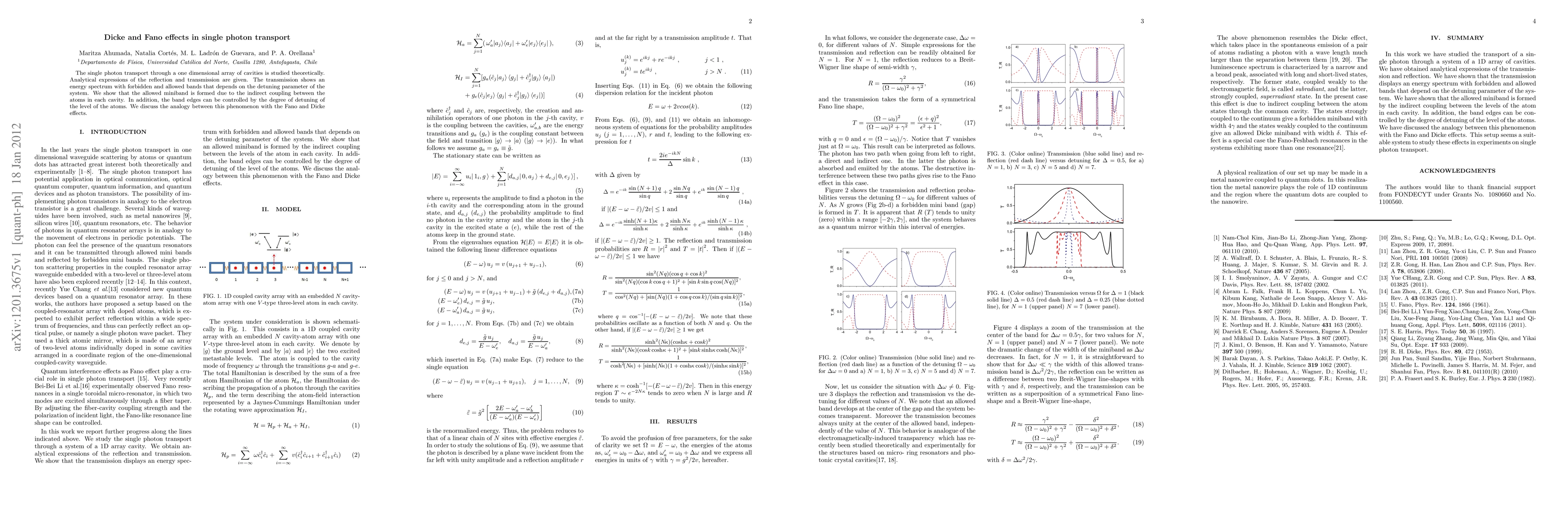 Researchers studied single photon transport through a 1D array of cavities, finding an energy spectrum with forbidden and allowed bands that can be controlled by detuning parameters.