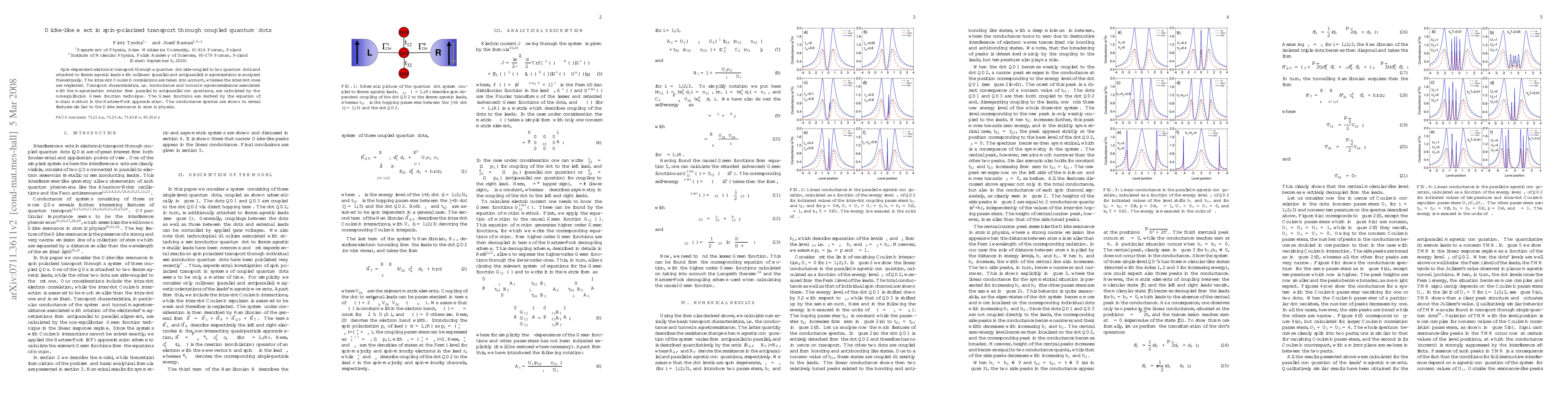 This paper theoretically investigates spin-polarized transport through a quantum dot coupled to two others and connected to ferromagnetic leads. The study reveals conductance features akin to the Dicke resonance, employing the nonequilibrium Green function technique and Hartree-Fock approximation to account for intra-dot Coulomb correlations.