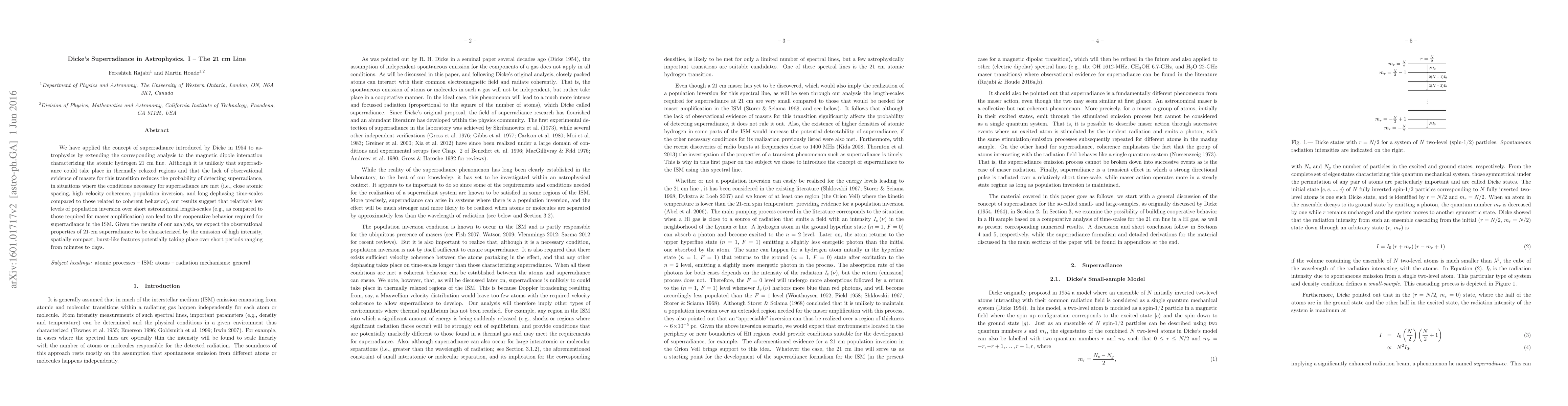 Researchers apply Dicke's superradiance concept to 21 cm line in astrophysics, suggesting that low levels of population inversion can lead to cooperative behavior required for superradiance in the interstellar medium, potentially producing high-intensity, burst-like features.
