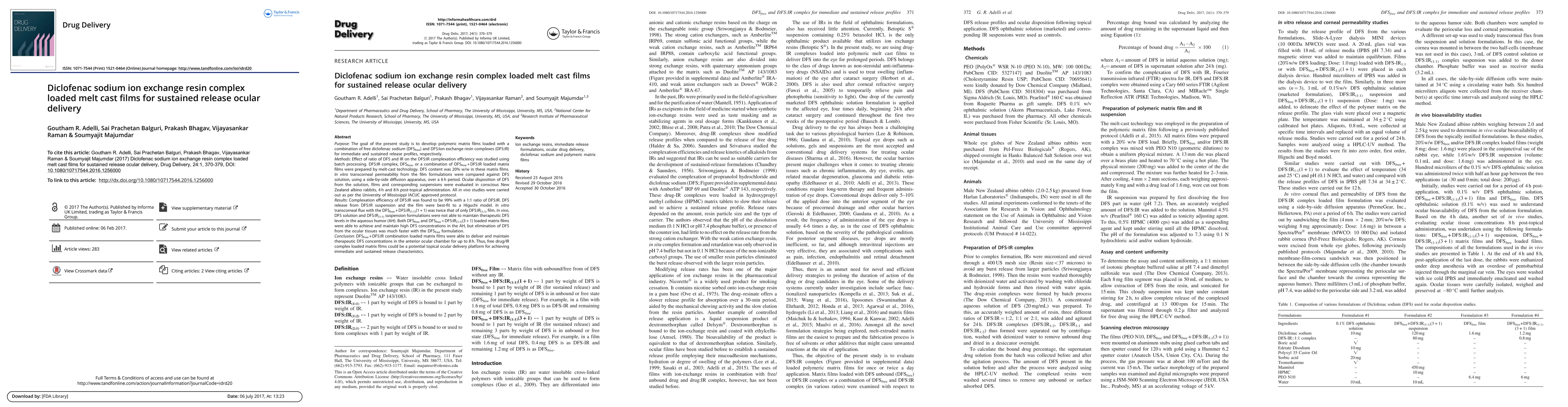 Researchers developed matrix films loaded with diclofenac sodium and an ion exchange resin for sustained release ocular delivery, achieving therapeutic levels in the anterior chamber for up to 8 hours.