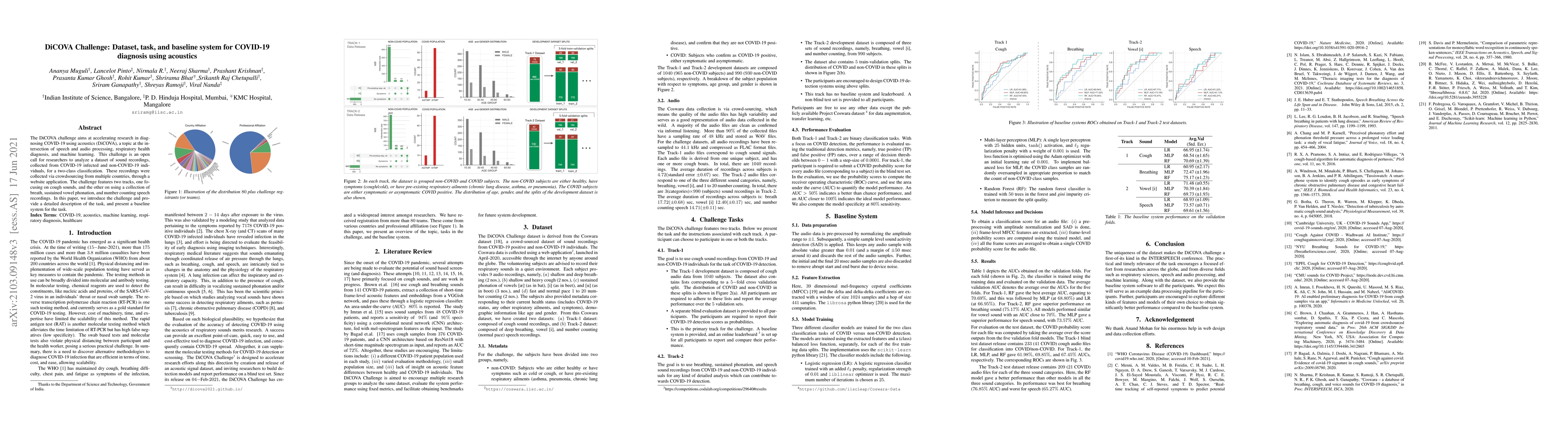 The DiCOVA challenge presents a dataset of acoustic recordings for diagnosing COVID-19, focusing on cough and other speech sounds. It provides a baseline system and aims to accelerate research in this interdisciplinary field.