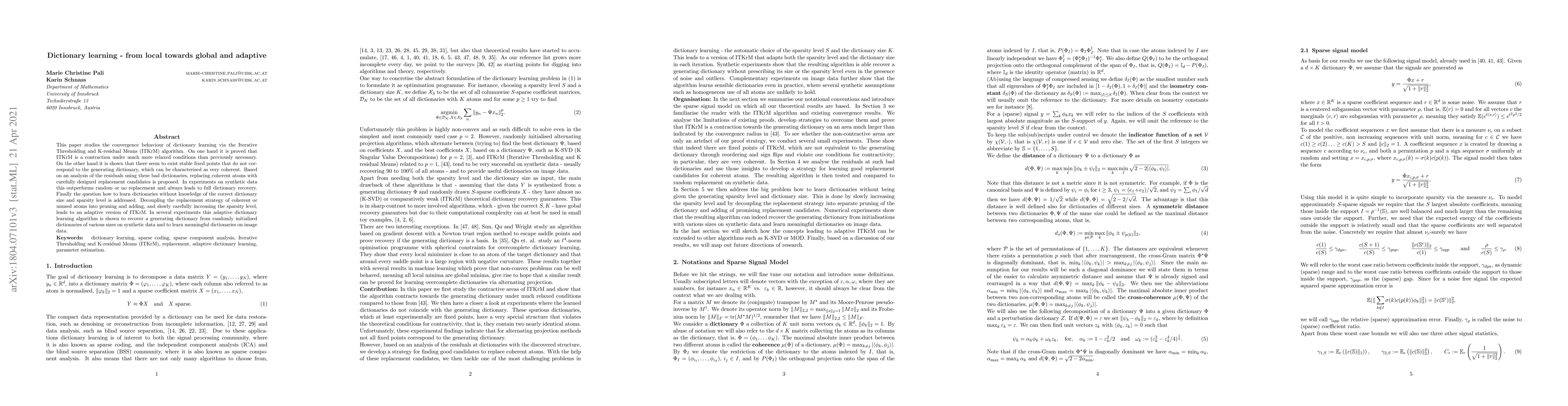 This paper studies the convergence behaviour of dictionary learning via the Iterative Thresholding and K-residual Means (ITKrM) algorithm. On one hand it is proved that ITKrM is a contraction under much more relaxed conditions than previously necessary. On the other hand it is shown that there seem to exist stable fixed points that do not correspond to the generating dictionary, which can be characterised as very coherent. Based on an analysis of the residuals using these bad dictionaries, replacing coherent atoms with carefully designed replacement candidates is proposed. In experiments on synthetic data this outperforms random or no replacement and always leads to full dictionary recovery. Finally the question how to learn dictionaries without knowledge of the correct dictionary size and sparsity level is addressed. Decoupling the replacement strategy of coherent or unused atoms into pruning and adding, and slowly carefully increasing the sparsity level, leads to an adaptive version of ITKrM. In several experiments this adaptive dictionary learning algorithm is shown to recover a generating dictionary from randomly initialised dictionaries of various sizes on synthetic data and to learn meaningful dictionaries on image data.