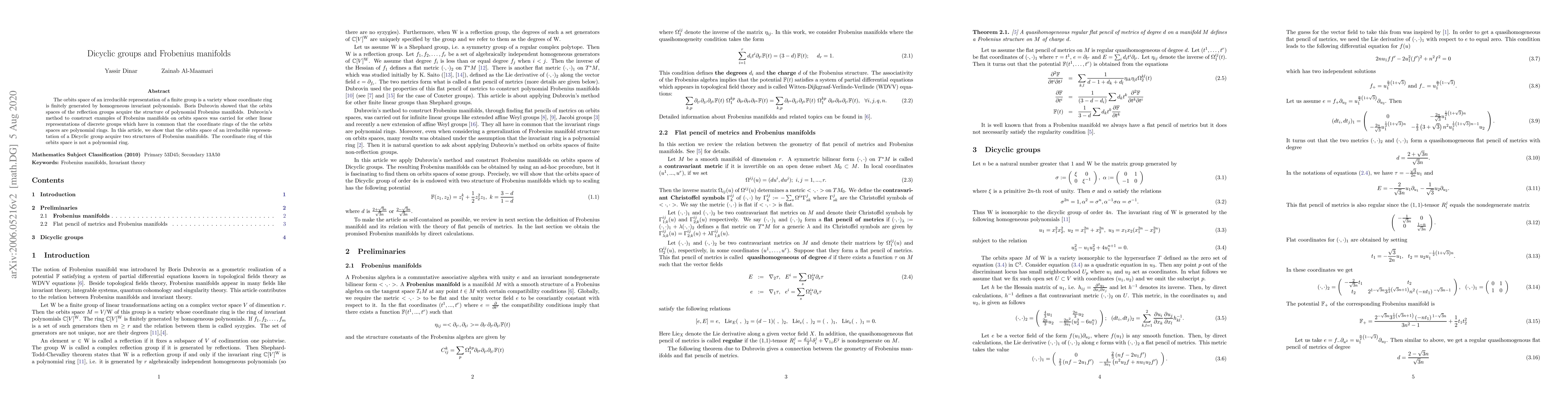 Summary: This paper demonstrates that the orbits space of an irreducible representation of a Dicyclic group possesses two distinct Frobenius manifold structures, contrasting with the previously established polynomial Frobenius manifold structure found in reflection groups, due to the non-polynomial nature of its coordinate ring.