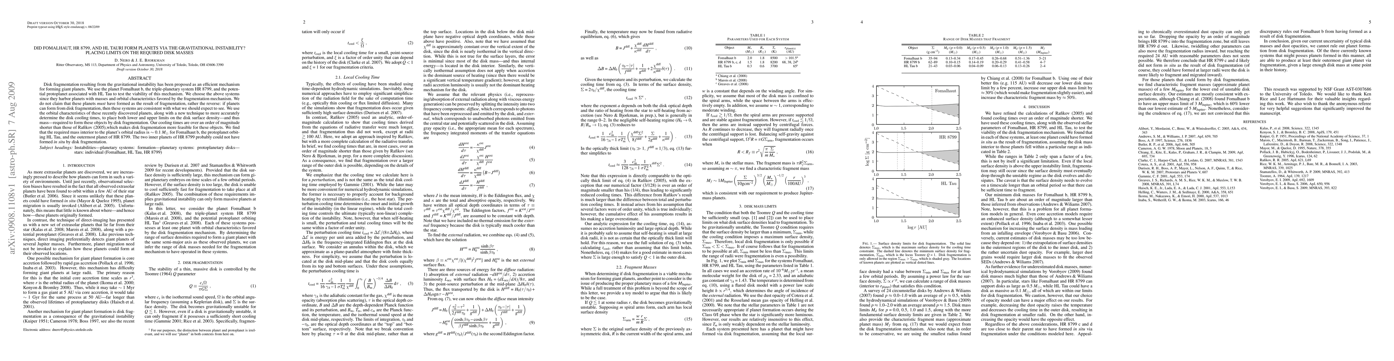 Disk fragmentation resulting from the gravitational instability has been proposed as an efficient mechanism for forming giant planets. We use the planet Fomalhaut b, the triple-planetary system HR 8799, and the potential protoplanet associated with HL Tau to test the viability of this mechanism. We choose the above systems since they harbor planets with masses and orbital characteristics favored by the fragmentation mechanism. We do not claim that these planets must have formed as the result of fragmentation, rather the reverse: if planets can form from disk fragmentation, then these systems are consistent with what we should expect to see. We use the orbital characteristics of these recently discovered planets, along with a new technique to more accurately determine the disk cooling times, to place both lower and upper limits on the disk surface density--and thus mass--required to form these objects by disk fragmentation. Our cooling times are over an order of magnitude shorter than those of Rafikov (2005),which makes disk fragmentation more feasible for these objects. We find that the required mass interior to the planet's orbital radius is ~0.1 Msun for Fomalhaut b, the protoplanet orbiting HL Tau, and the outermost planet of HR 8799. The two inner planets of HR 8799 probably could not have formed in situ by disk fragmentation.