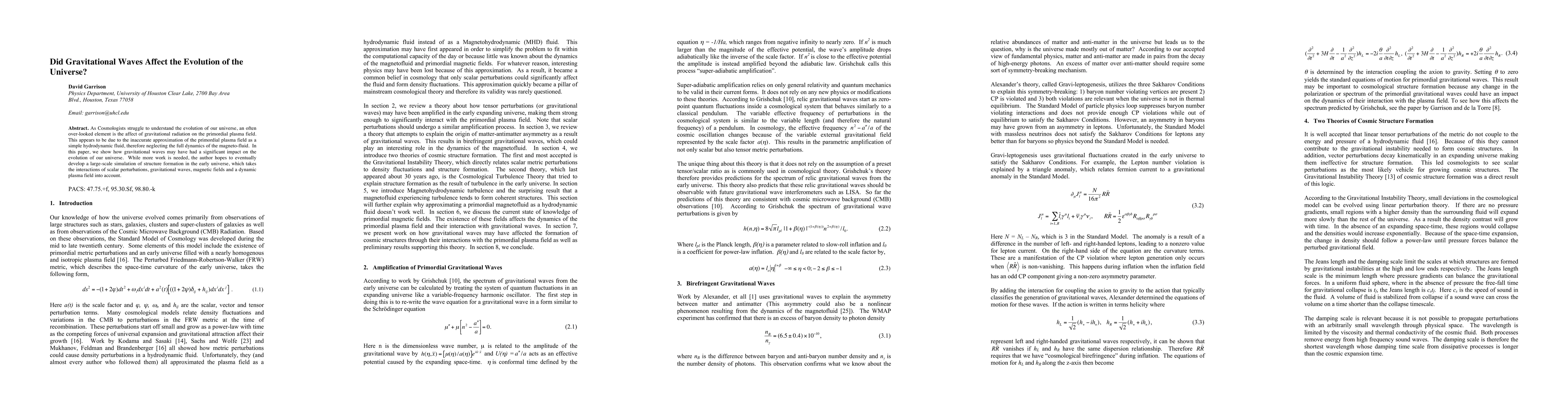 As Cosmologists struggle to understand the evolution of our universe, an often over-looked element is the affect of gravitational radiation on the primordial plasma field. This appears to be due to the inaccurate approximation of the primordial plasma field as a simple hydrodynamic fluid, therefore neglecting the full dynamics of the magneto-fluid. In this paper, we show how gravitational waves may have had a significant impact on the evolution of our universe. While more work is needed, the author hopes to eventually develop a large-scale simulation of structure formation in the early universe, which takes the interactions of scalar perturbations, gravitational waves, magnetic fields and a dynamic plasma field into account.