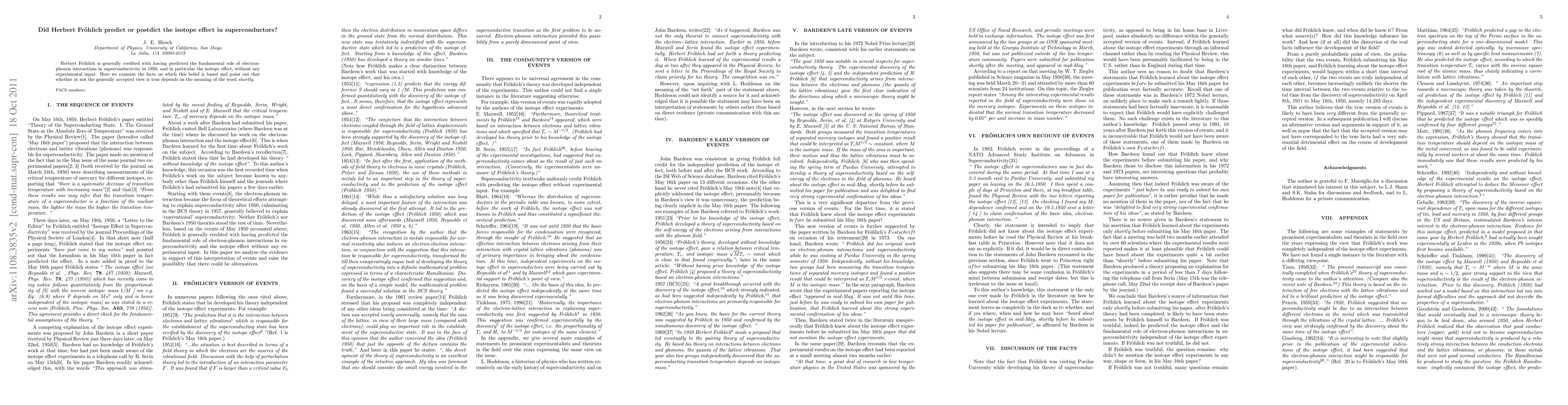 Summary: Herbert Fröhlich is credited for predicting the role of electron-phonon interactions in superconductivity, including the isotope effect, in 1950. However, the accuracy of this attribution hinges on the interpretation of "shortly" in relation to experimental evidence.