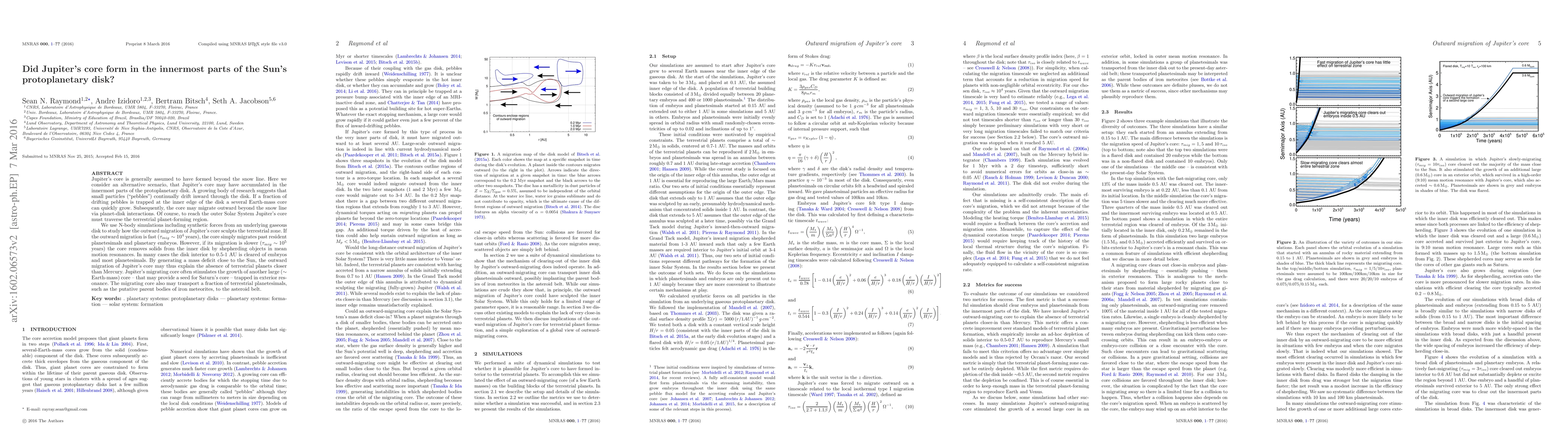 This paper explores the possibility that Jupiter's core formed in the innermost parts of the Sun's protoplanetary disk through the accumulation of drifting pebbles, then migrated outward, potentially explaining the absence of terrestrial planets closer than Mercury and influencing the formation of Saturn's core.