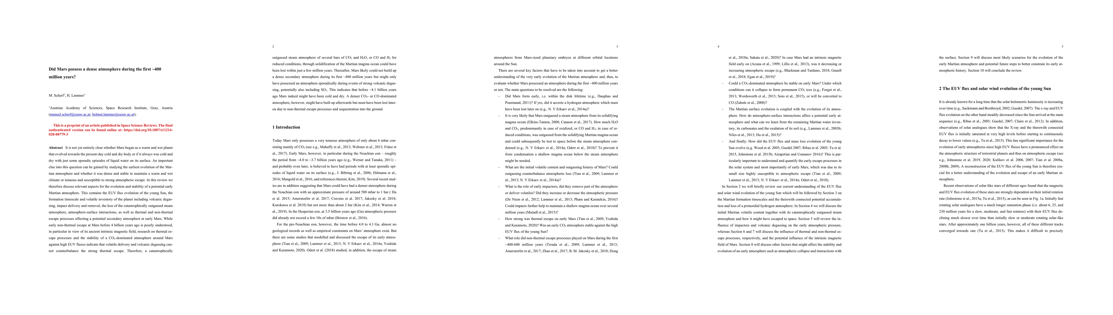 Researchers explored Mars' early atmosphere, concluding that it was likely cold and dry for ~400 million years due to strong thermal escape processes. A denser atmosphere may have formed later but was short-lived due to non-thermal escape.