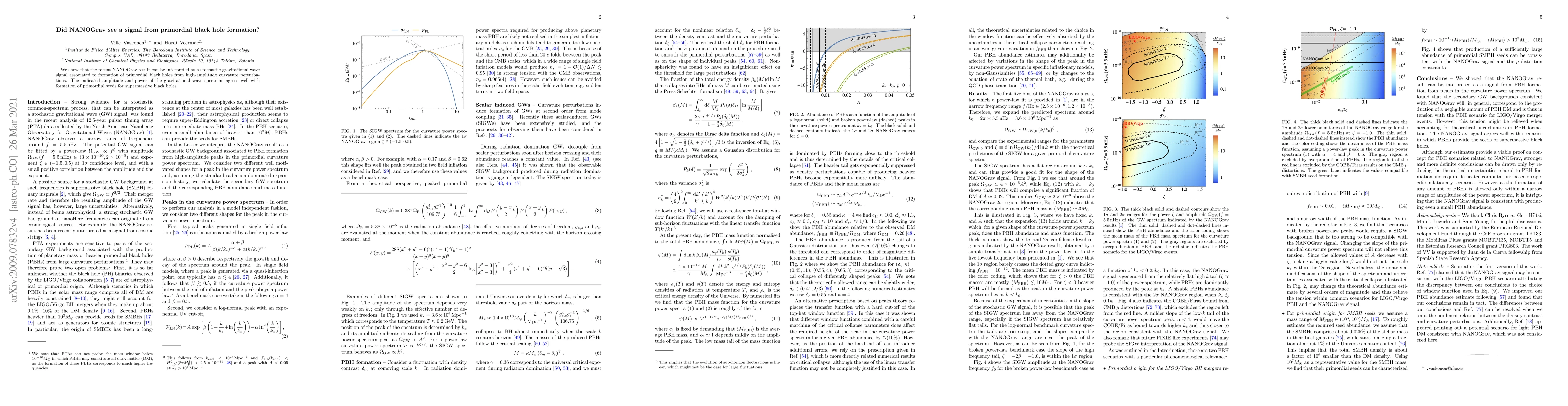 Summary: The NANOGrav findings may indicate a stochastic gravitational wave signal linked to primordial black hole formation due to high-amplitude curvature perturbations, aligning with the creation of primordial seeds for supermassive black holes. This suggests a potential new source of gravitational waves from the early universe.