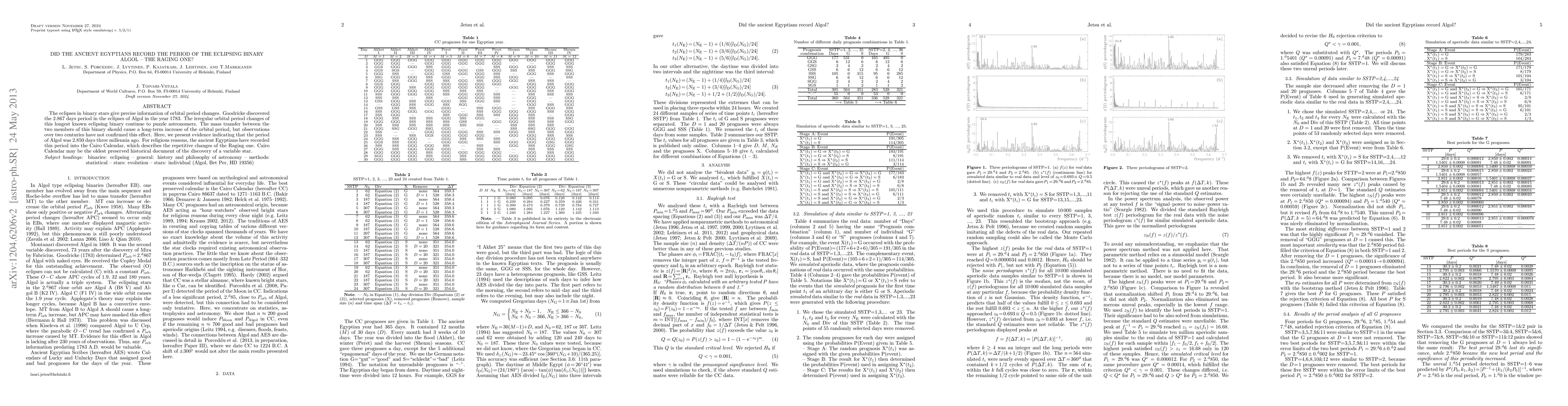 The paper presents evidence suggesting that the ancient Egyptians recorded the 2.850-day period of the eclipsing binary star Algol in the Cairo Calendar, potentially making it the oldest known historical document of a variable star discovery. This finding challenges the expectation of a long-term increase in Algol's orbital period due to mass transfer.