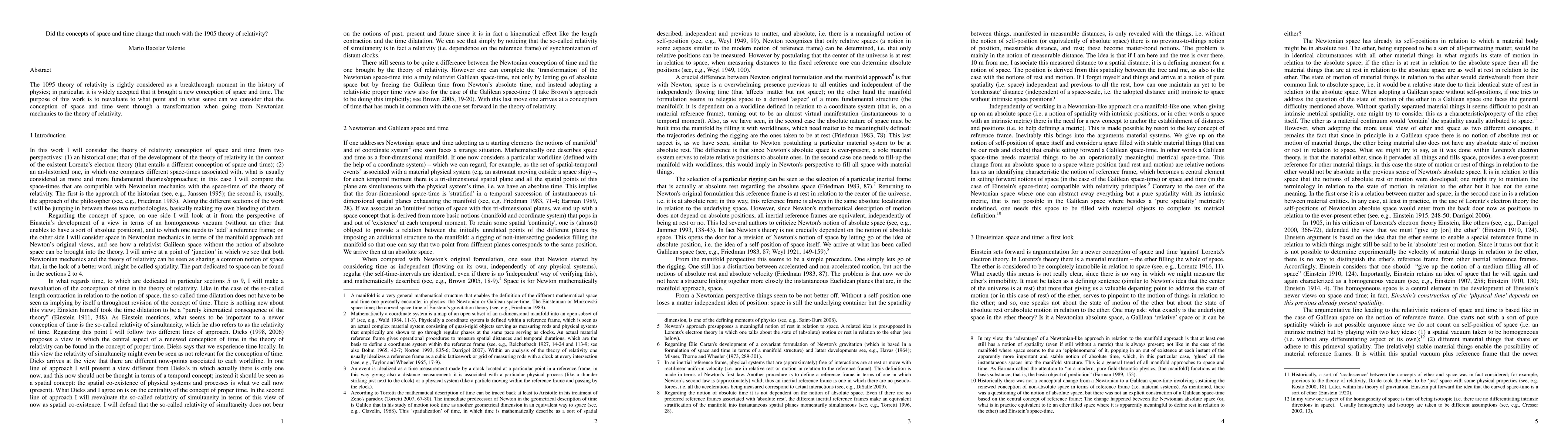 This paper reevaluates the extent to which the concepts of space and time underwent a transformation with the introduction of Einstein's 1905 theory of relativity, challenging the notion that it completely revolutionized these notions compared to Newtonian mechanics.