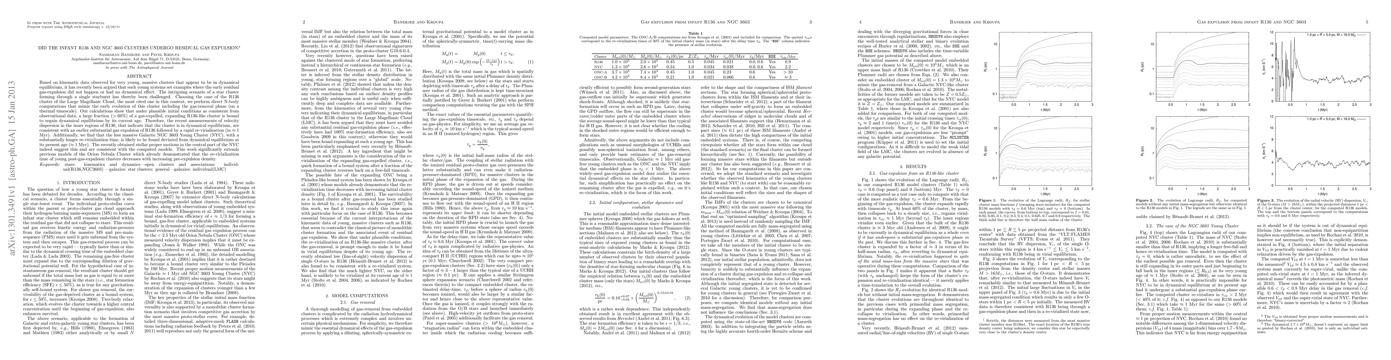 This study uses N-body simulations to show that the massive R136 cluster in the Large Magellanic Cloud likely experienced substantial gas expulsion early in its formation, followed by rapid re-virialization. In contrast, the less massive NGC 3603 cluster in the Milky Way is predicted to remain out of dynamical equilibrium due to its longer re-virialization time.