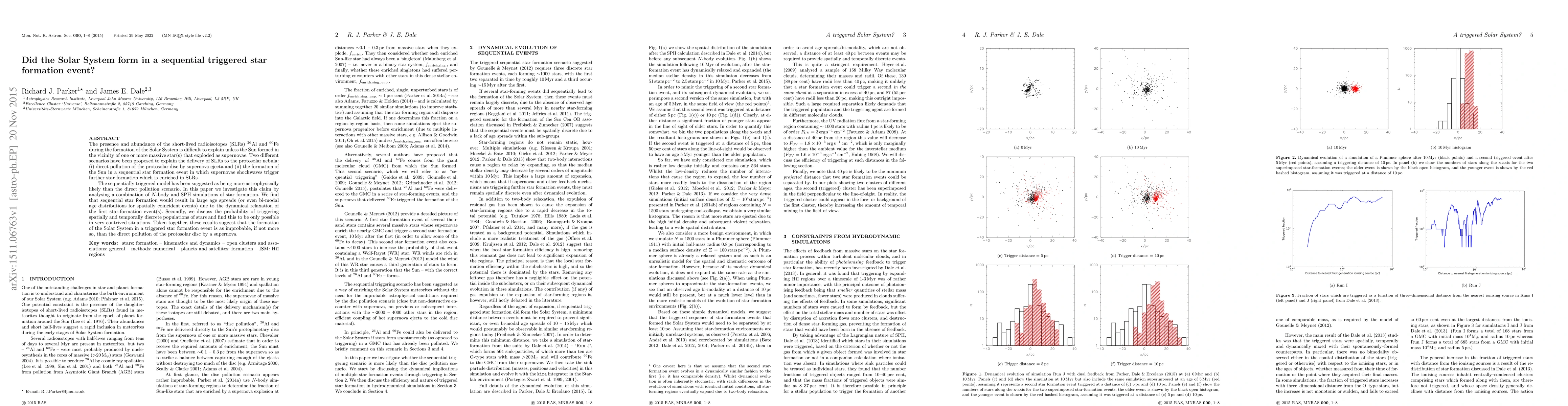 The presence and abundance of the short-lived radioisotopes (SLRs) $^{26}$Al and $^{60}$Fe during the formation of the Solar System is difficult to explain unless the Sun formed in the vicinity of one or more massive star(s) that exploded as supernovae. Two different scenarios have been proposed to explain the delivery of SLRs to the protosolar nebula: (i) direct pollution of the protosolar disc by supernova ejecta and (ii) the formation of the Sun in a sequential star formation event in which supernovae shockwaves trigger further star formation which is enriched in SLRs. The sequentially triggered model has been suggested as being more astrophysically likely than the direct pollution scenario. In this paper we investigate this claim by analysing a combination of $N$-body and SPH simulations of star formation. We find that sequential star formation would result in large age spreads (or even bi-modal age distributions for spatially coincident events) due to the dynamical relaxation of the first star-formation event(s). Secondly, we discuss the probability of triggering spatially and temporally discrete populations of stars and find this to be only possible in very contrived situations. Taken together, these results suggest that the formation of the Solar System in a triggered star formation event is as improbable, if not more so, than the direct pollution of the protosolar disc by a supernova.