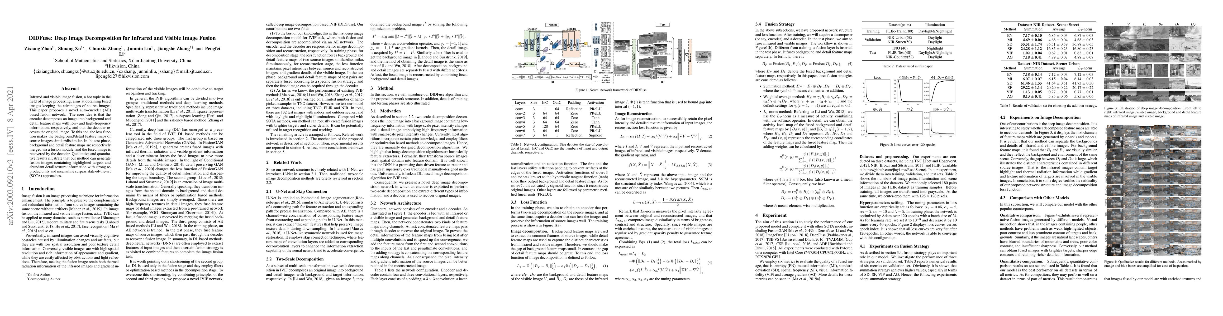 The paper introduces DIDFuse, an auto-encoder based network for infrared and visible image fusion, which decomposes images into background and detail features, then merges them to generate fused images with enhanced target highlights and texture details, outperforming existing methods.