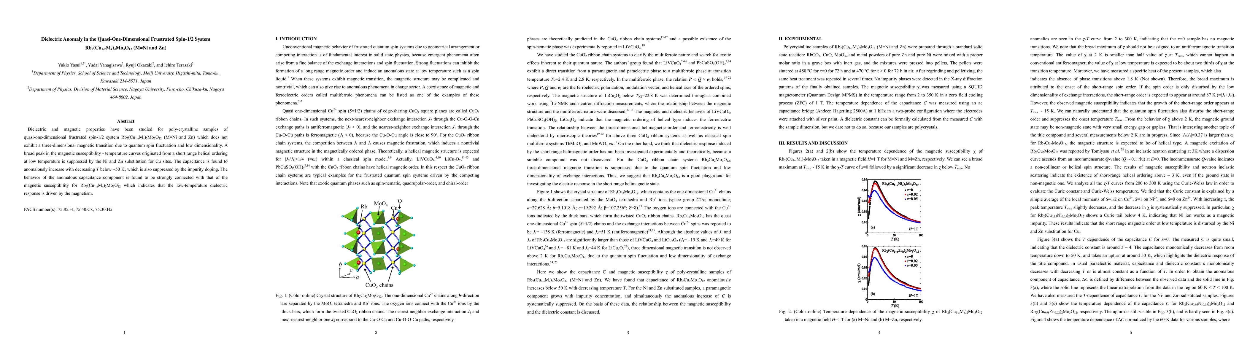Researchers studied the dielectric and magnetic properties of a quasi-one-dimensional spin system with impurities, finding an anomalous increase in capacitance below 50K driven by magnetism, and suppressed by doping.