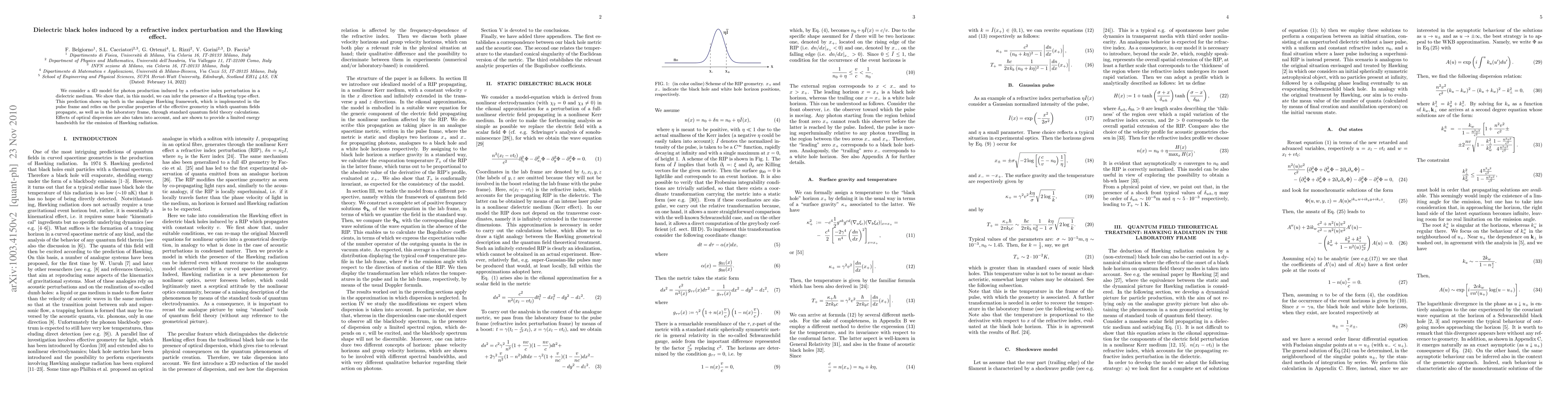 This paper explores a 4D model where photon production occurs due to a superluminal refractive index perturbation in a dielectric medium, demonstrating the presence of a Hawking-like effect. Both analogue Hawking frameworks and standard quantum field theory calculations support the prediction, with optical dispersion limiting the energy bandwidth of emitted Hawking radiation.