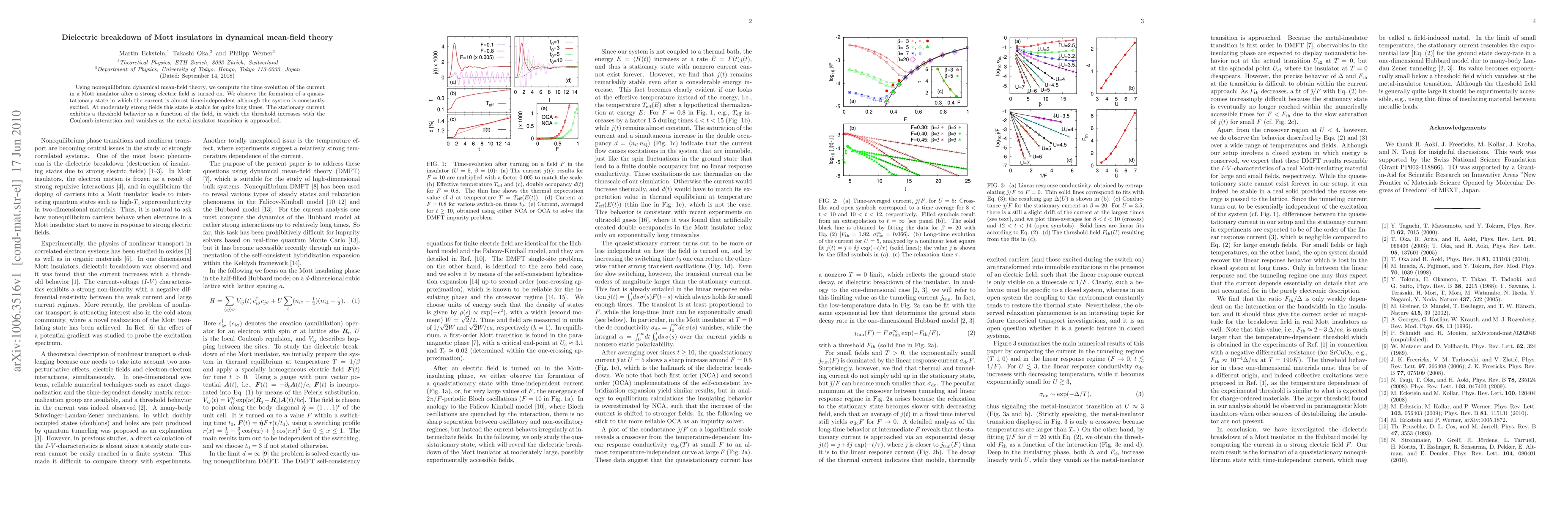 The work combines nonequilibrium DMFT with the study of Mott insulators' response to strong electric fields, offering new perspectives on nonlinear transport and dielectric breakdown in these materials.