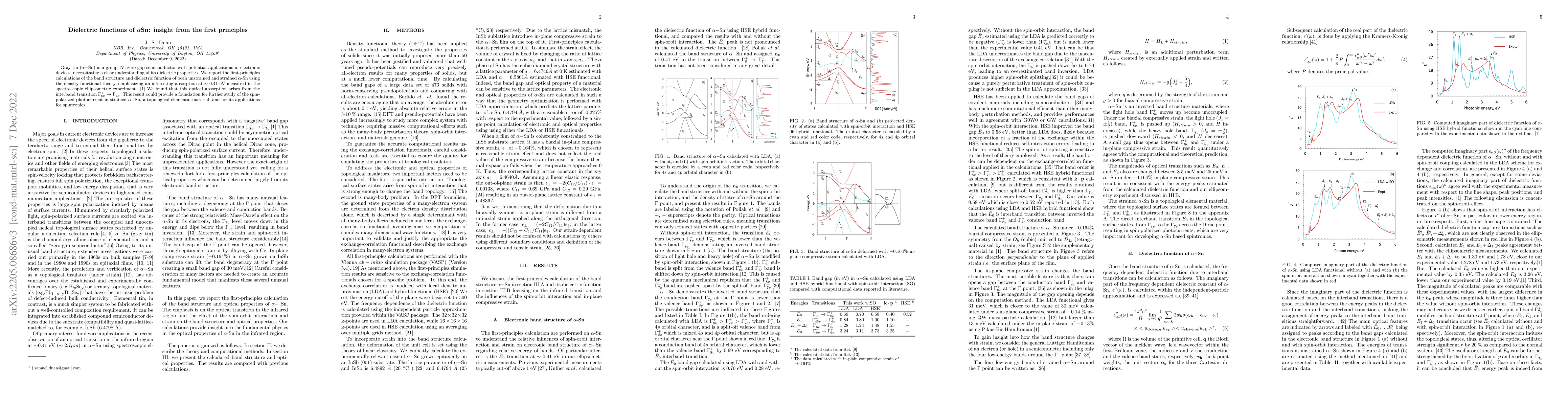 This study uses first-principles calculations to investigate the dielectric properties of gray tin ($\alpha$-Sn), focusing on its band structure and dielectric function. The research highlights the significant impact of spin-orbit coupling on the electronic and optical properties of $\alpha$-Sn, explaining an anomalous absorption feature and validating the findings with experimental spectroscopic ellipsometry.